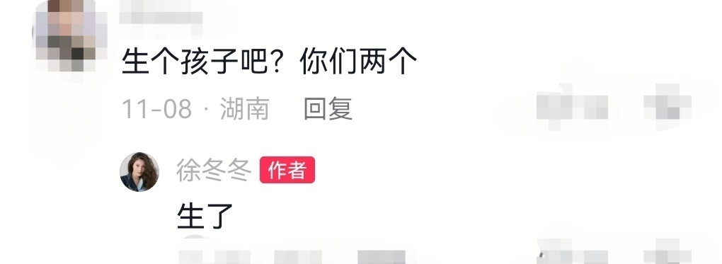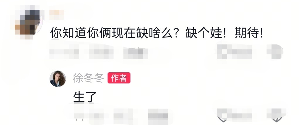 徐冬冬的“生了”回复快成固定模板了!穿件宽松外套要被催生,吃个酸辣粉要被猜测孕吐。建议夫妻俩下次直接晒健身照配文“在练腹肌,勿扰”~