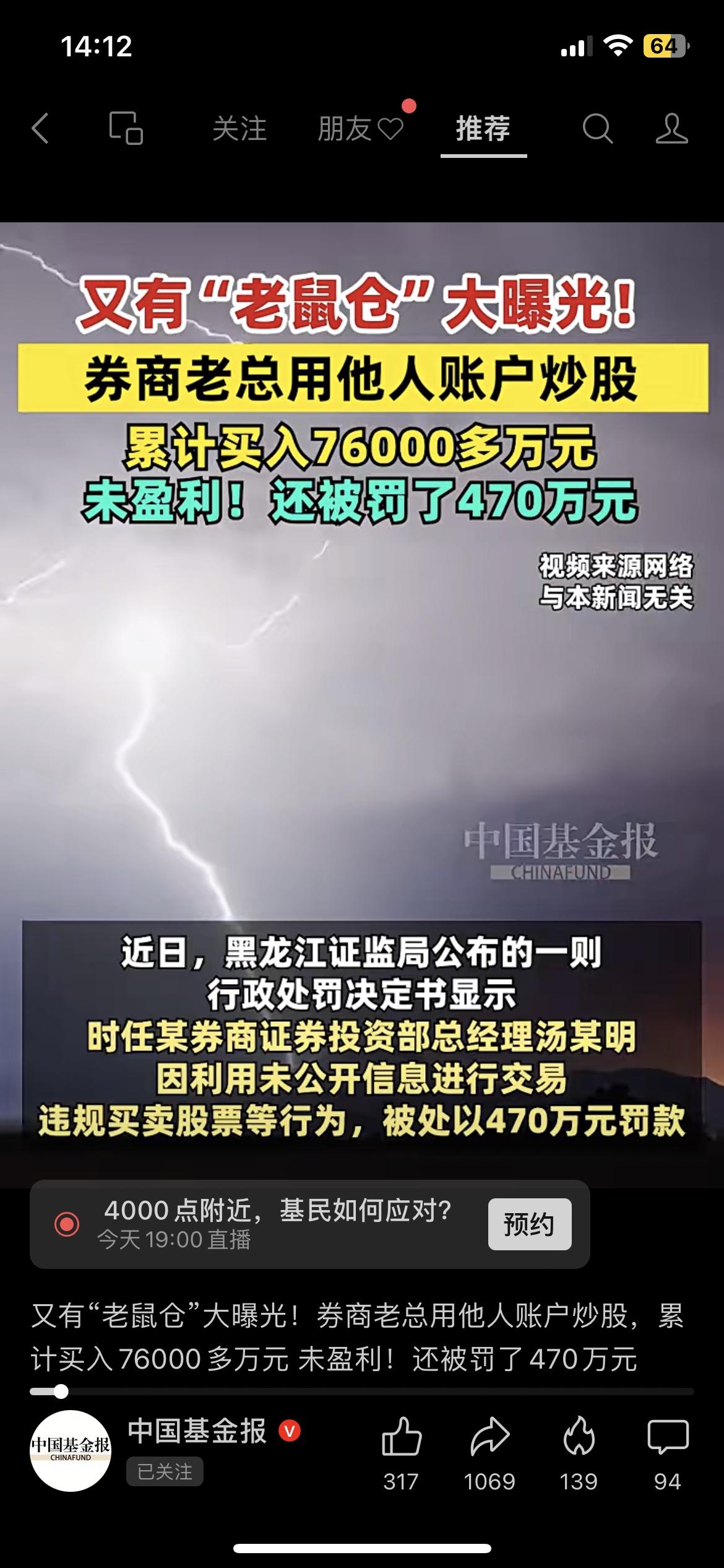 离谱!券商投资部老总7.6亿“老鼠仓”没赚钱,11月被罚470万! 证监会最新罚单来了!2025年11月11日,黑龙江证监局公布处罚,某券商前投资部总经理汤某明,利用职务便利搞“老鼠仓”——控制他人账户买卖股票超7.6亿元,还暗示别人跟着交易,结果一顿操作下来一分钱没赚!最终因违法被罚款470万,其中违规炒股罚20万,利用未公开信息交易罚450万!你们觉得这处罚够狠吗? 券商老总7.6亿老鼠仓被罚470万 证监会严惩证券违法