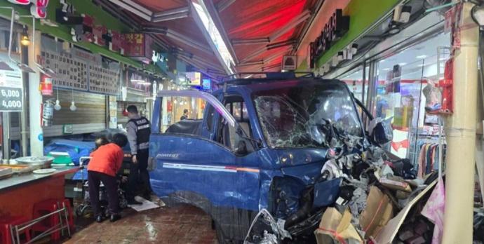 【韩国一货车冲入市场 致2死约20伤】据韩国媒体13日报道,一辆货车当天冲入京畿道富川市一市场,造成2人死亡、约20人受伤,其中11人重伤。via新华社