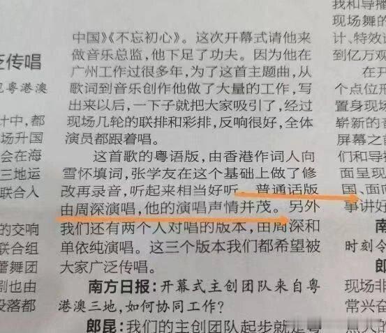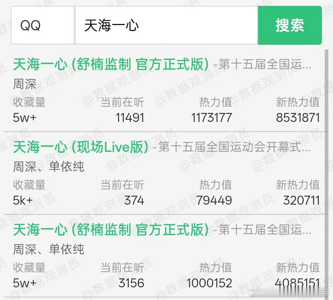 全运会开幕式主题曲《天海一心》周深单人版的收听人数是最高的,几十个官媒评论区前排也都是周深,国民歌手路人盘真大,周深唱得好,词曲作者都说自己的首选就是周深