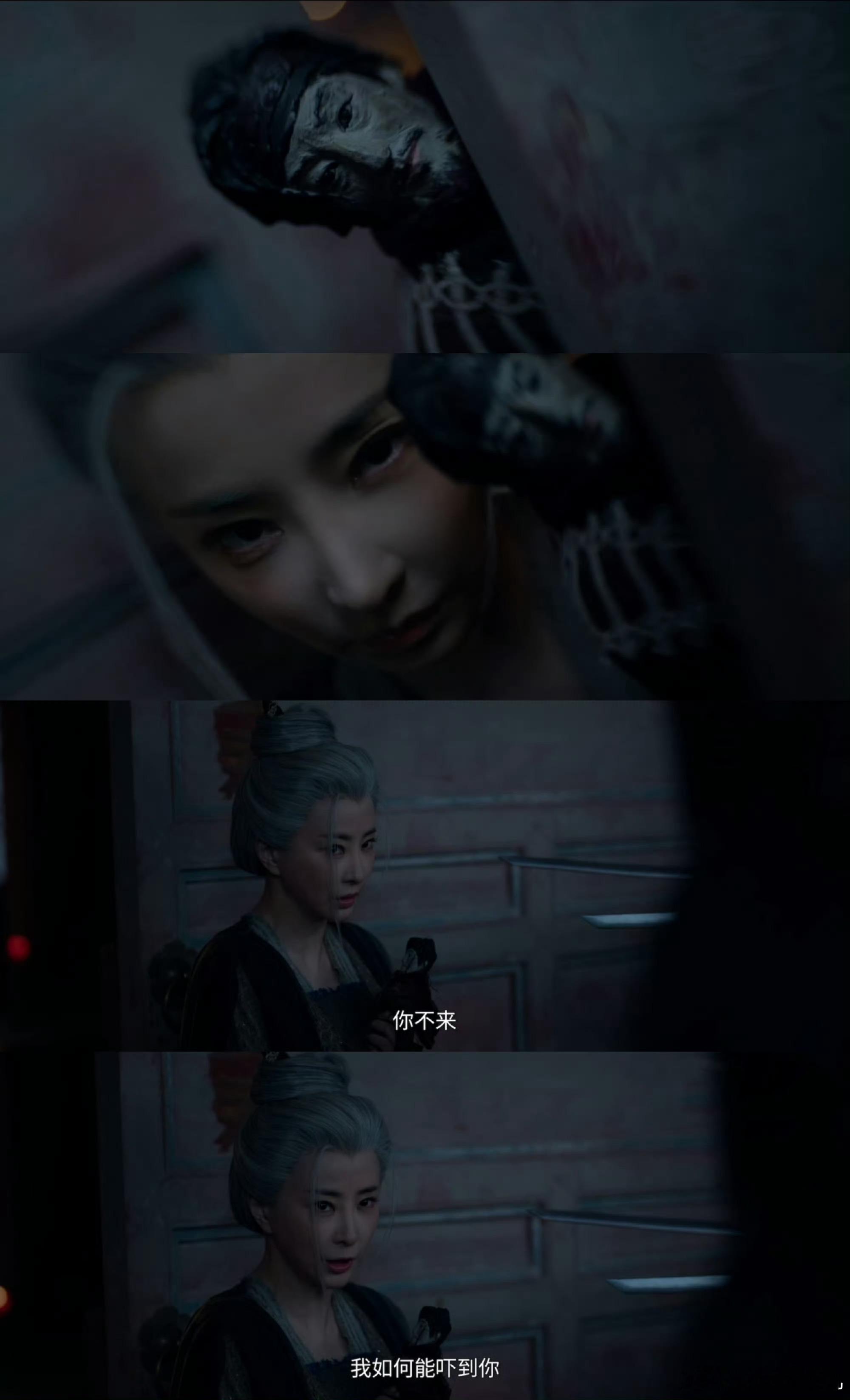 阿梓一出场就自带阴森滤镜,她的白发造型和安静的举止,让整个场景都笼罩在一种说不清