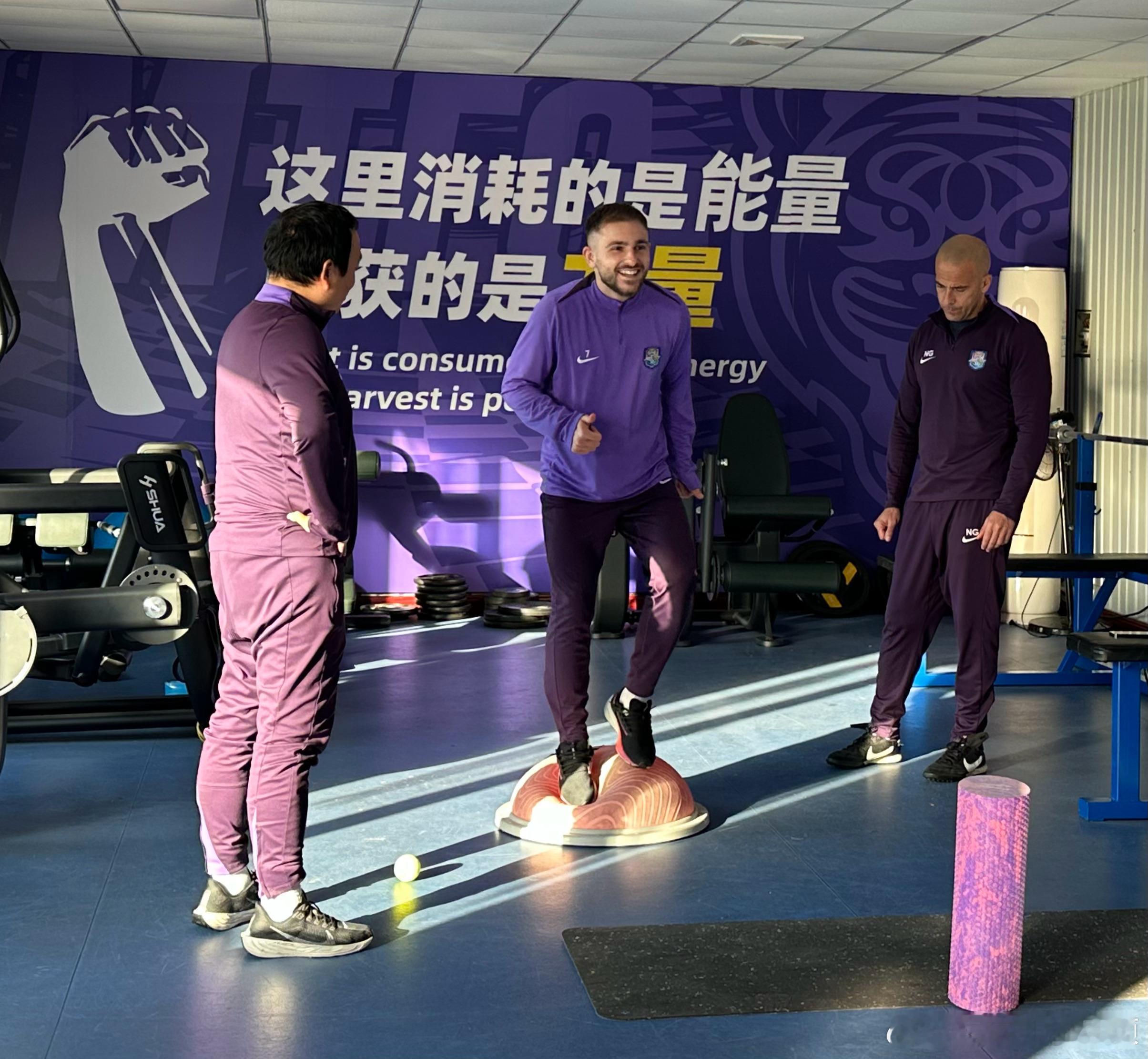 今天下午的训练,巴顿、阿代米俩人在屋儿里练,大夫、体能康复教练、翻译仨人盯着。