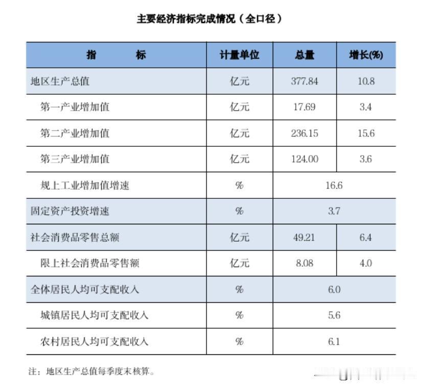鄠邑区1-9月经济成绩单出炉!多项指标增速亮眼,尽显区域发展活力。 数据显示,全区生产总值达377.84亿元,可比价同比增长10.8%,增速领跑,成为经济增长核心引擎;规模以上工业增加值同比大涨16.6%,工业发展势头强劲,为经济注入硬核动力。 固定资产投资同比增长3.7%,持续为基础设施、产业项目建设蓄力;社会消费品零售总额49.21亿元,同比增长6.4%,消费市场稳步回暖,居民消费潜力不断释放。 民生领域同样给力,全体居民人均可支配收入同比增长6.0%,其中农村居民收入增速6.1%略高于城镇的5.6%,城乡收入差距进一步缩小,经济发展红利切实惠及民生。 整体来看,鄠邑区1-9月经济运行稳中有进、韧性十足,为全年高质量发展打下坚实基础。