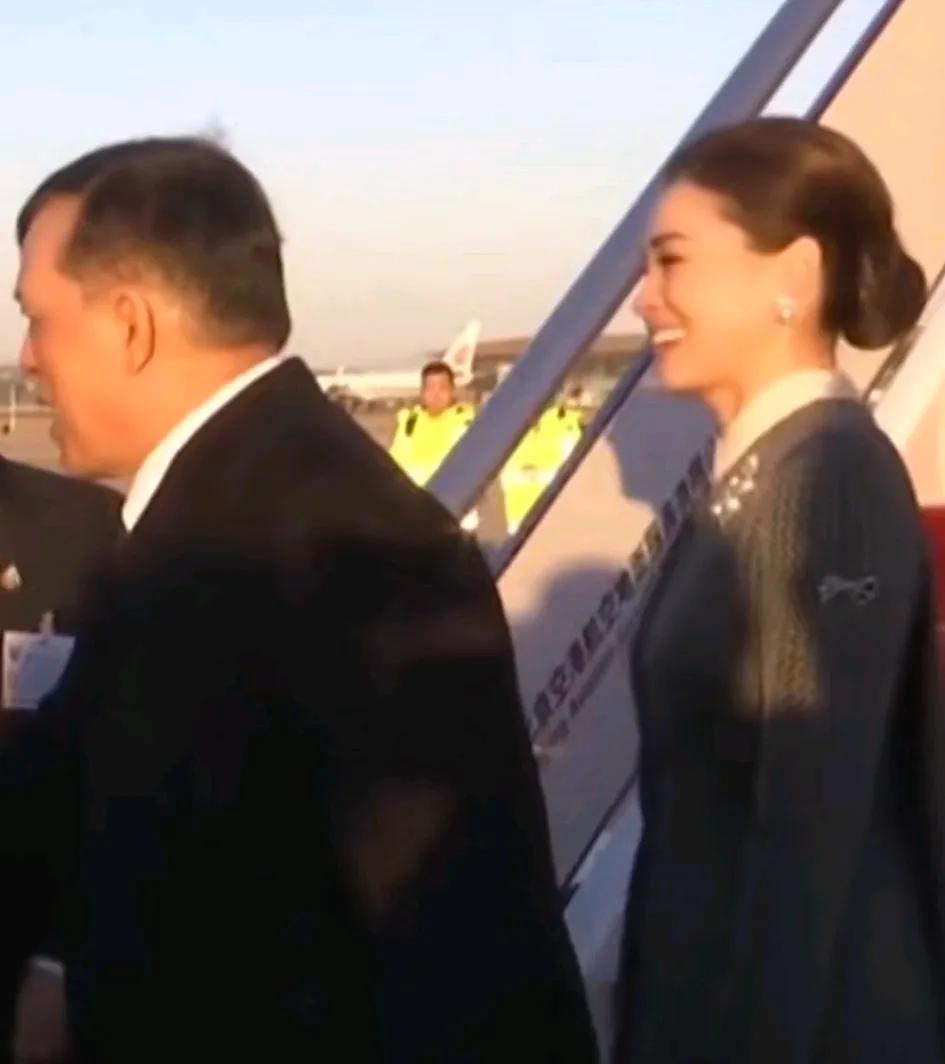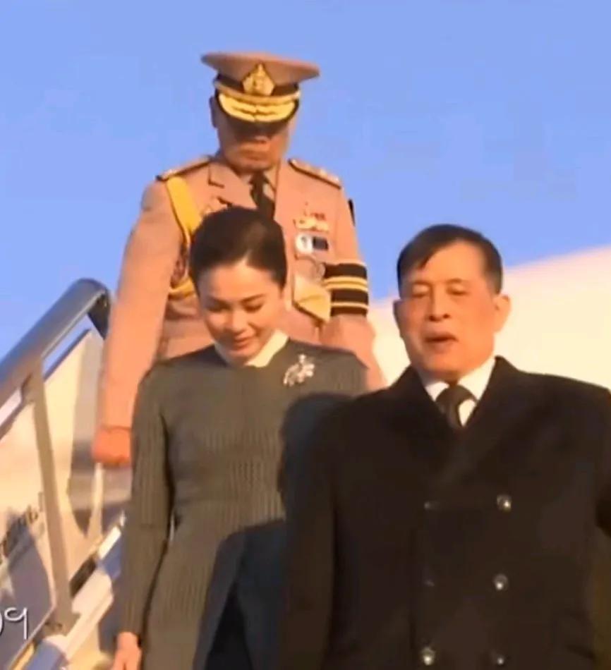 今天下午三点,泰王玛哈和苏提达已经到达,开始访华行程。 泰王玛哈穿着黑色的羊绒大
