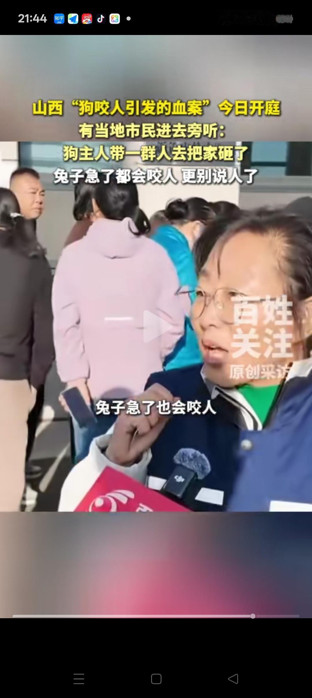 山西狗咬人一事,狗主人妹妹哭着说:我们是3个人去的,不是9个人,只有一个人手里拿了铁锹,也只是砸了几块玻璃,并没有动手。后来是爸爸觉得我们受委屈了,才上去用拳头挥了一下,结果就倒下了。 其实今天有一个路人站在旁观者的角度,说的很好,她说:狗咬人其实是小事,坐下来好好谈总会解决,都是邻居。 但是你们几个人跑到别人家要说法,大吵大闹,砸玻璃,还拿着东西,要知道兔子急了还咬人,何况是人。 这么明显的一个道理,可惜狗主人一家没一个人懂得。过去了这么久,也没有说要反省自身,唉。。 但凡当初有一个懂点事,拦着点,哪有今天啊。。