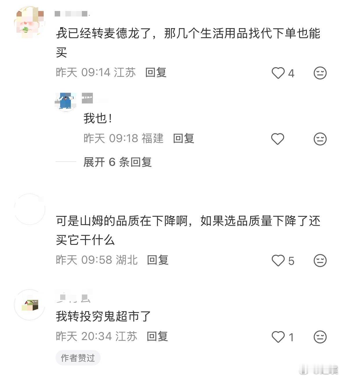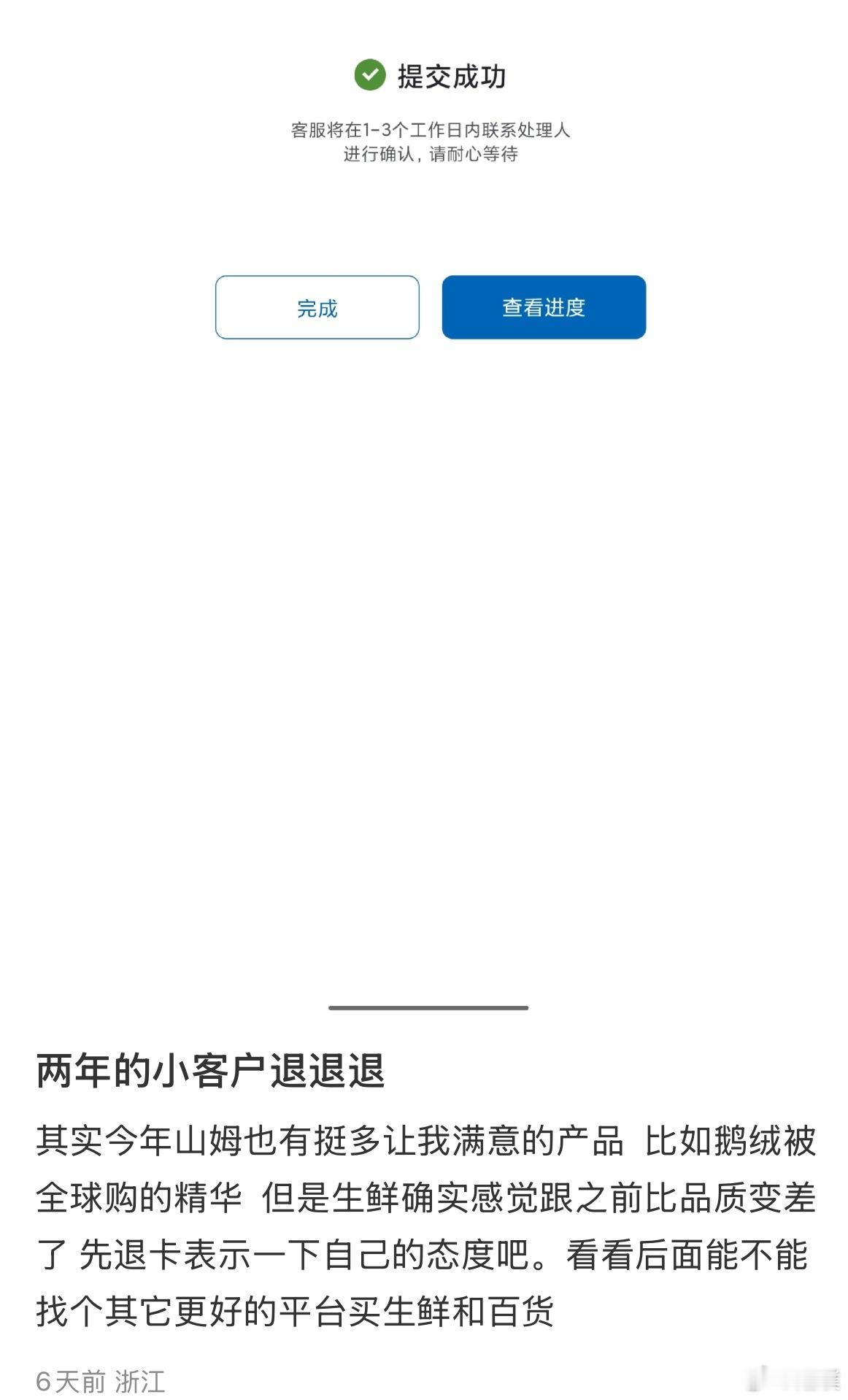 刷到挺多用户都因为山姆品质下降了决定退卡的。