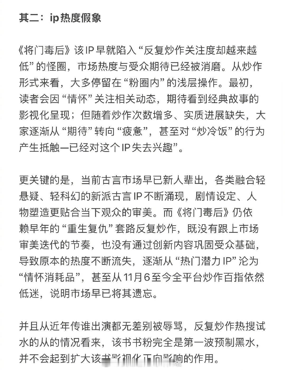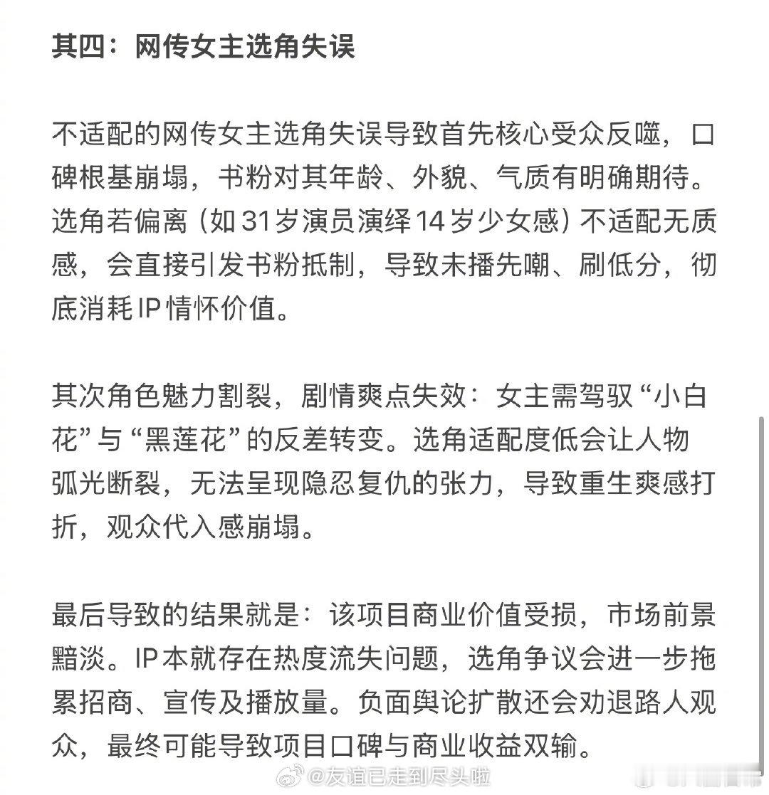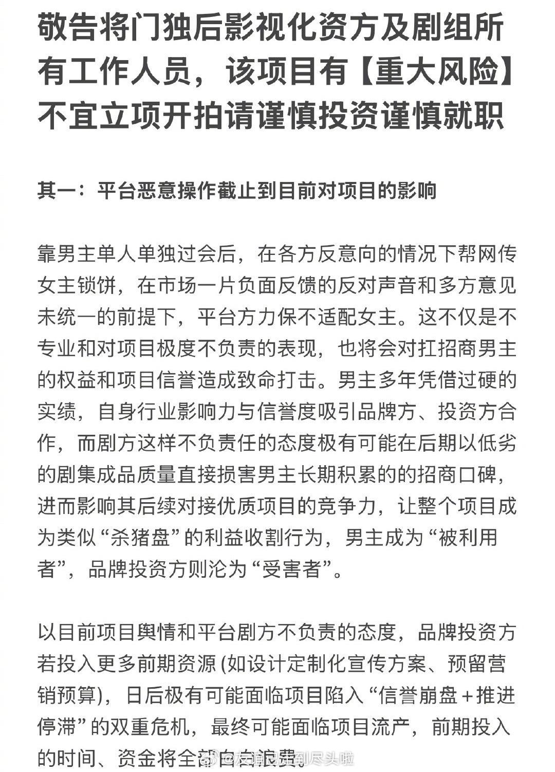 王鹤棣粉丝发长文分析 不适合立项开拍:1、平台的操作2、ip热度假象3、预制烂剧4、网传女主选角失误5、无底线放任炒作