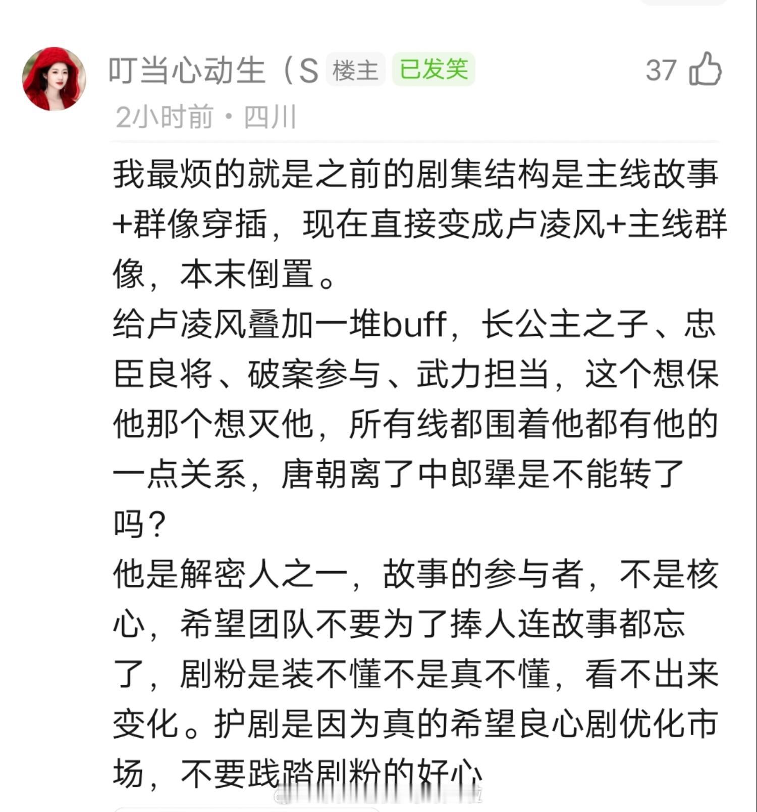 唐诡3的口碑好像也崩盘了,剧情越来越突出卢凌风,苏无名像个可有可无的小跟班,变成杨旭文的大男主剧唐诡本质是个破案剧,资本为了捧杨旭文真的用力过猛。难道以为靠加戏和各种叠buff,就能把他捧成流量生吗?