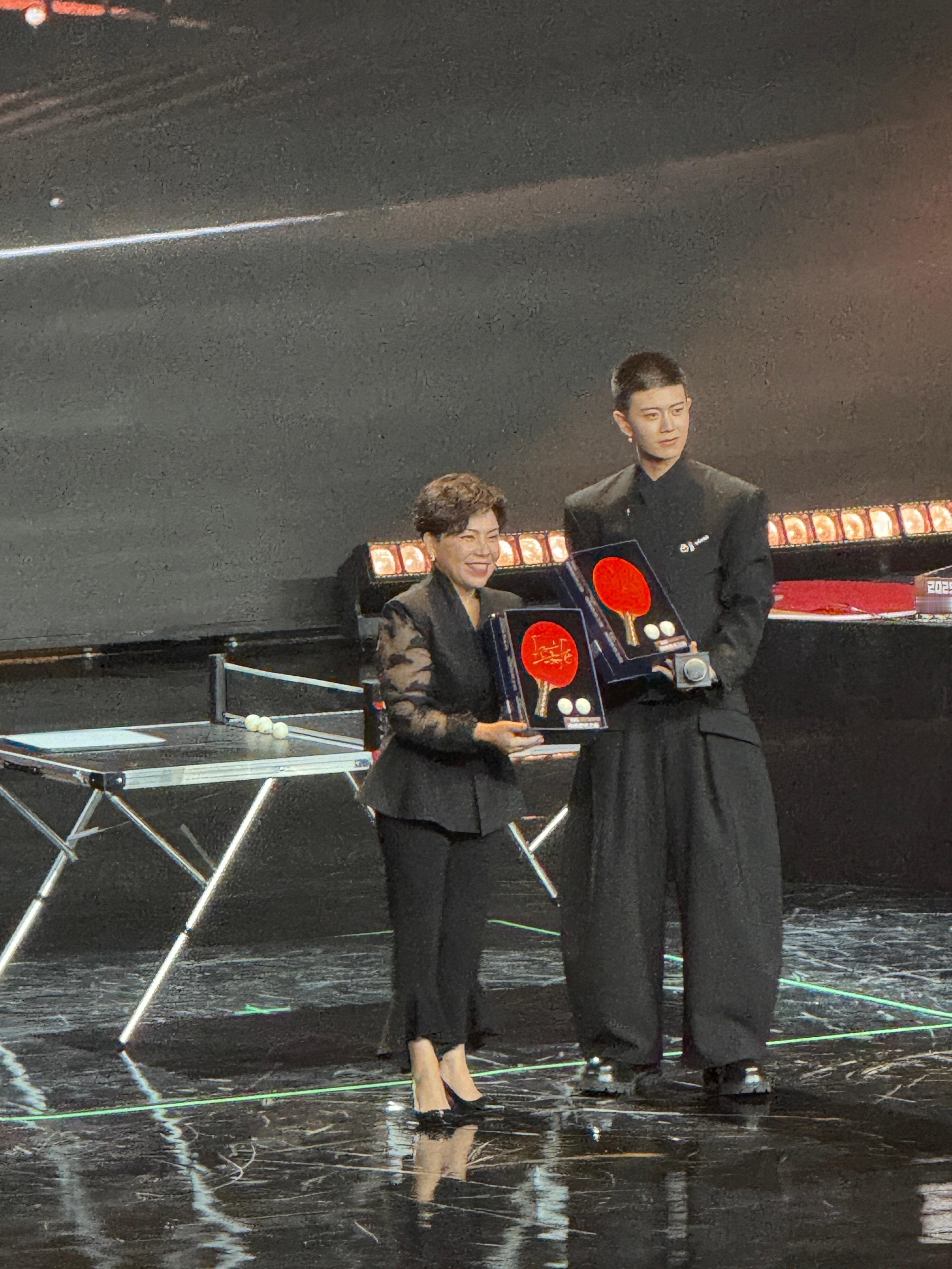 上, 与 同台领奖!