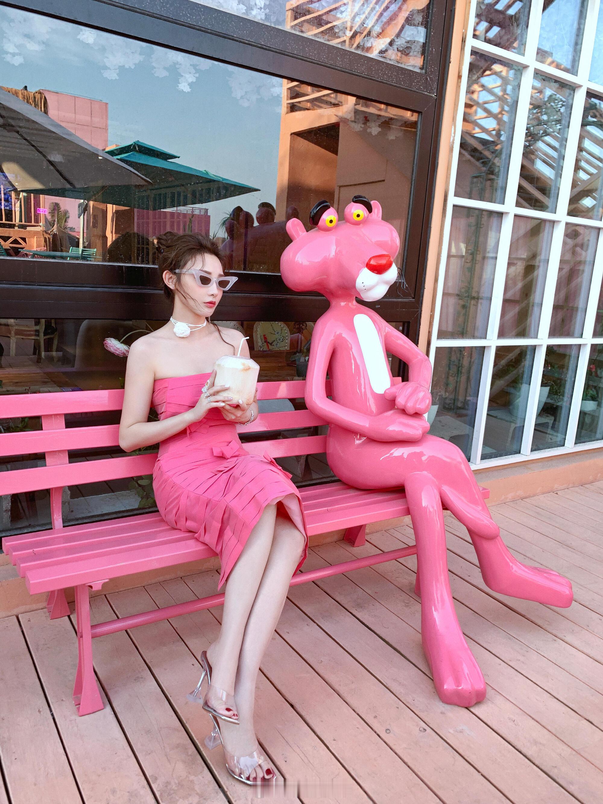 张予曦下黑上白最上是粉,泳池日常造型罢了。