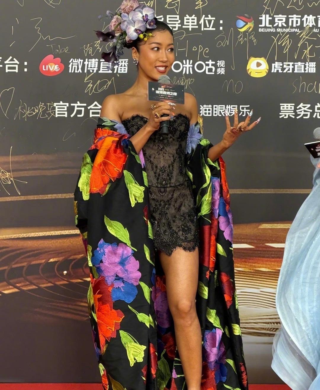 吉克隽逸往那儿一站,仿佛一只未开屏的孔雀在散发魅力!她身上那衣服就像孔雀身上最珍贵的羽毛,闪耀着独特的光芒,这比喻太绝啦,发明它的人简直是天才!