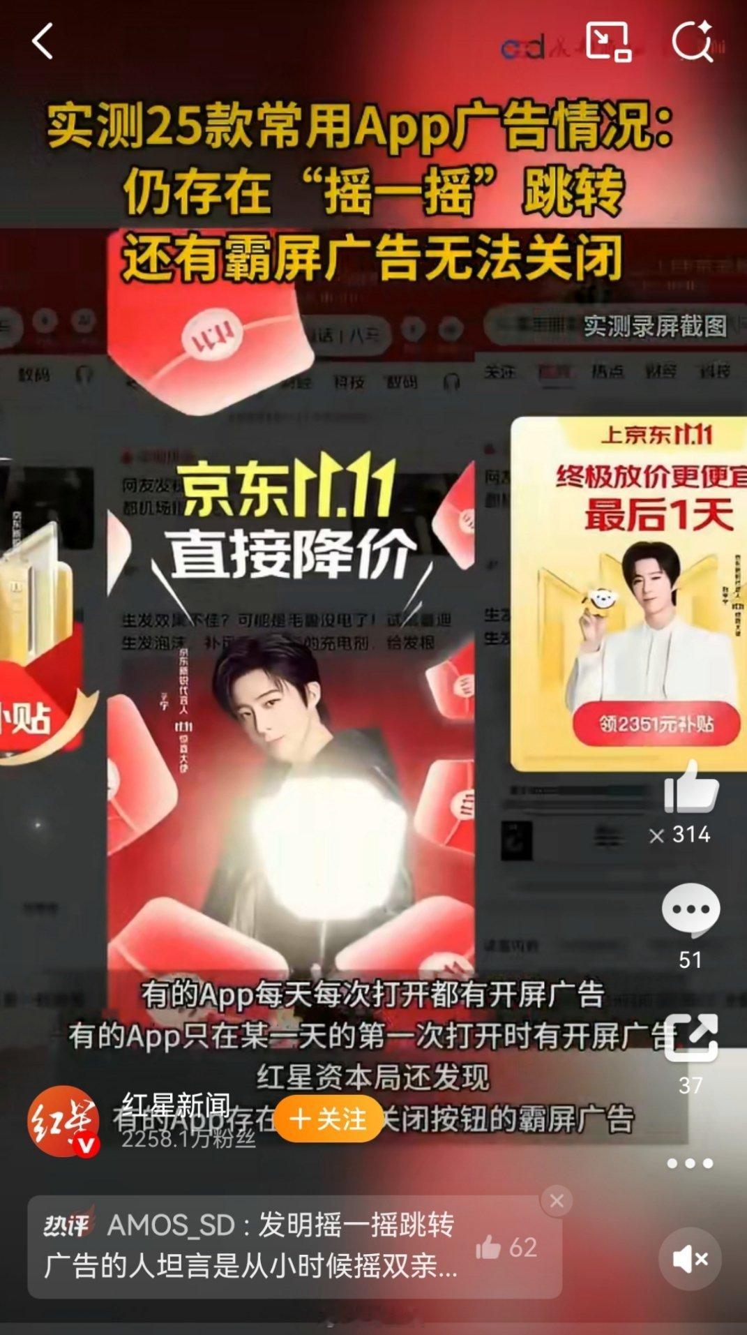 个人建议,凡事有利用开屏广告抖动跳转行为的APP,所有网民自觉集体抵制这种流氓行为,已安装的卸载,没安装的拉入黑名单!有些大厂真的太不要脸了,得治!