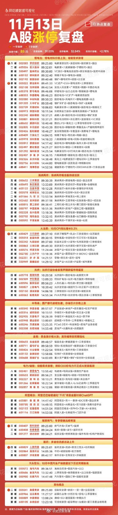 11月13号涨停板复盘锂电池27家涨停海峡两岸11家涨停大消费8家涨停