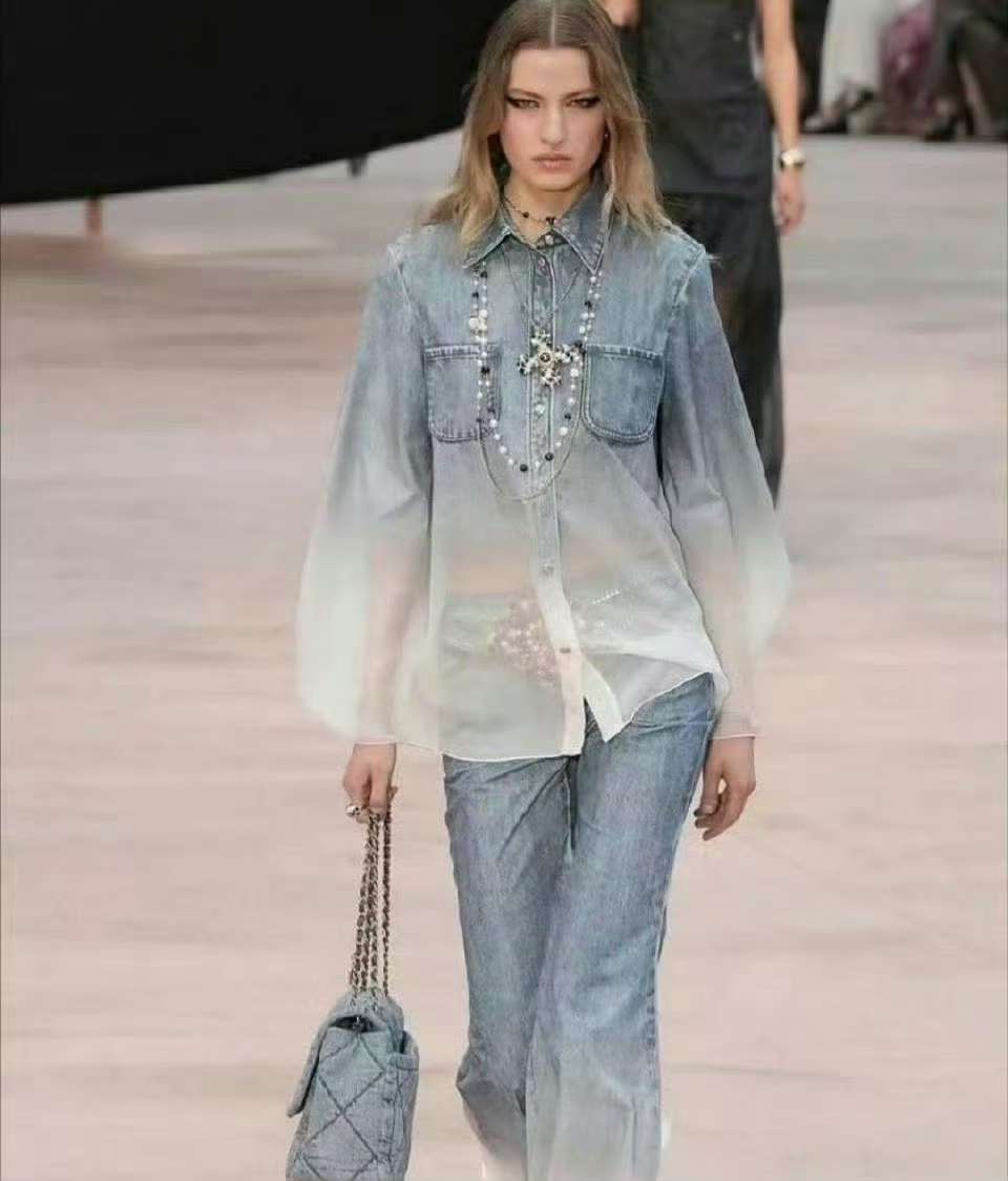 香奈儿这衣服超神奇,上牛仔下纱竟然无缝合痕迹,咋做到的。。