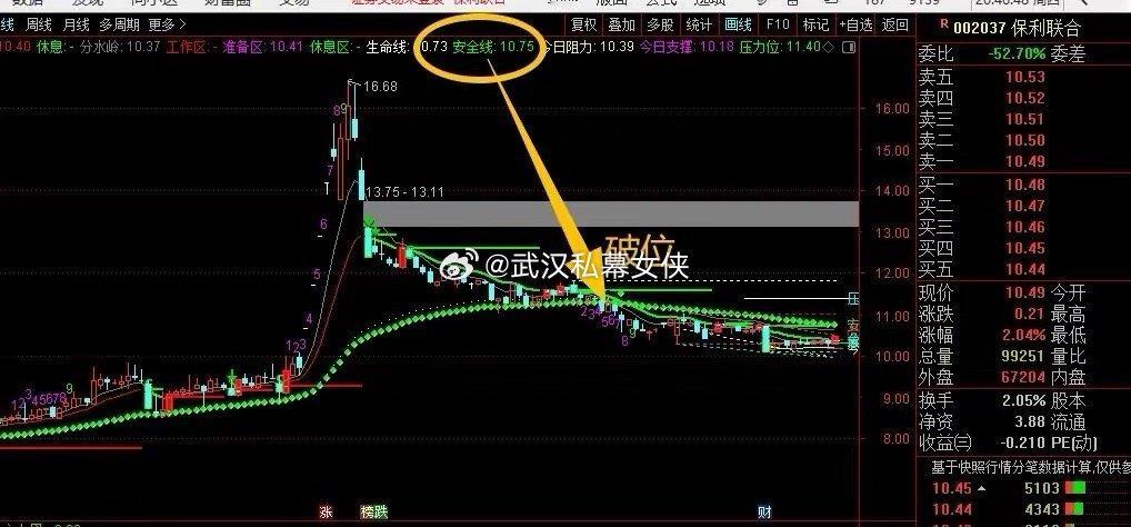保利联合(002037)走势简析• 核心判断:走势已转弱,破位下行。• 关键信号: 股价已跌破10.75元的安全线支撑并未能收回,形成技术破位。• 操作建议: 当前以观望为主,风险大于机会,不建议轻易参与。需等待股价重新走强并站稳关键位置后,再考虑下一步。一句话总结:趋势破位,多看少动。