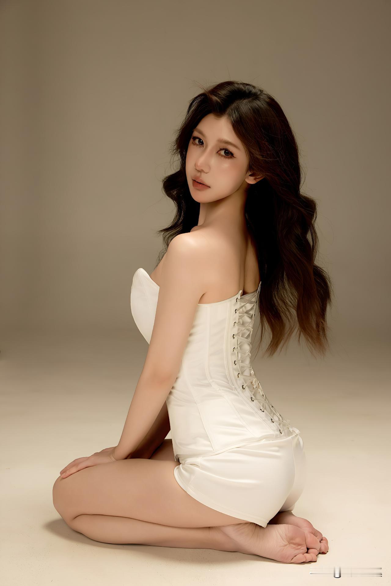 纱袖裹着软光,橄榄绿裙角勾住脚踝的霜——她指尖轻拢褶皱,是房间里,漫开的奶杏色月