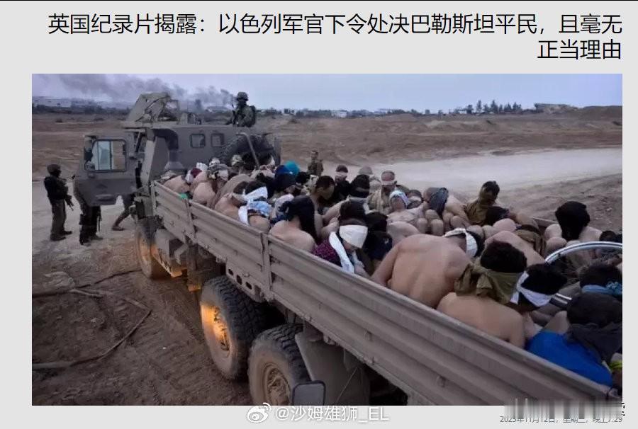 英国《卫报》新发布的纪录片《突破防线:以色列战争内幕》显示,以色列军队侵略加沙地带期间,以军本应规范军事行为的法律和道德标准的彻底崩溃,宗教极端主义和政治煽动成为以色列军队屠杀平民的借口。大量以军参战官兵的证词显示,许多屠杀巴勒斯坦平民的行为完全是指挥官和士兵的自发决定(类似于小鬼子),完全不受国际法或官方指令的约束。 以色列军队的一名坦克部队指挥官丹尼尔说:“任何想肆意开枪的人都可以这样做,而无需接受任何质询。” 这句话概括了战场上危险的转变:如今,向平民开枪无需任何理由,仅仅因为怀疑或感觉对方行为不当即可。装甲兵上尉约塔姆·维尔克解释说,理论上讲,开火前必须具备意图、敌意和能力。然而,在加沙,这些规则完全失效,仅仅因为有人在无人居住区行走,就足以被视为攻击目标。影片中一位名叫埃利的士兵说:“生死不再掌握在法律手中,而是掌握在战场上指挥官的良心手中。”他还补充说,“恐怖分子”的定义变得随意:走得快的人是可疑分子,走得慢的人是更可疑的分子,甚至一群结伴而行的人,只要其中一人走得慢,就可能被定义“军事编队”。 另一名以色列士兵讲述的事件中,一名军官下令摧毁一栋位于安全区域的建筑物,仅仅因为看到有人站在屋顶上晾衣服。这名男子手无寸铁,也没有望远镜,最近的军事力量也在数百米之外,然而军官却下令轰炸他。炮弹摧毁了半栋建筑,造成无辜平民丧生。《卫报》分析的情报数据显示,即使按照以色列军方自行统计的数据库,加沙战争中至少有83%的巴勒斯坦死者是平民,这在现代冲突中是前所未有的比例。 以色列士兵的证词还揭露了他们在战场上广泛使用人肉盾牌的情况,尽管军方否认了这种做法。一位指挥官提到了军方内部所谓的“蚊子协议”,即强迫一名巴勒斯坦平民携带定位设备进入一条地下隧道,以便定位隧道位置。他说,这种做法迅速在部队内部蔓延,最终将人肉盾牌战术成为以军的标准程序。 这部影片还记录了以色列方面通过宗教和政治言论在煽动针对巴勒斯坦人的暴力行为中所扮演的危险角色。一位军官表示,“阿克萨洪水行动”后,以色列政客和犹太教拉比们的言论营造了一种使大规模屠杀合法化的氛围。以色列总统伊萨克·赫尔佐格宣称“加沙所有居民都负有责任”,这为士兵们提供了心理和道德上的掩护。据内塔·卡斯平中校作证,一位军方拉比敦促士兵们“效仿哈马斯”,对所有人进行不分青红皂白的报复。犹太教拉比阿夫拉罕·扎尔比耶夫吹嘘自己曾亲自驾驶军用推土机进入加沙,并声称摧毁居民区的计划是他提出的。他声称“以色列军队投入了数十万谢克尔摧毁加沙地带”,并断言他“改变了整支军队的行为”。 影片中最令人毛骨悚然的场景之一,是一位名叫“萨姆”的承包商的讲述,他曾在美国和以色列控制的“人道主义援助物资分发点”工作。他描述了亲眼目睹两名以色列士兵在人群中追赶两名巴勒斯坦青年,强迫他们跪下后进行处决,与IS没有任何区别。他还讲述了另一起事件:一辆载有四人的平民汽车在物资分发点附近被坦克摧毁。据联合国统计,至少有944名平民在试图领取粮食援助时丧生,但以色列军方一如既往地否认了这些事件。 影片以几位遭受严重精神创伤的士兵的证词结尾。丹尼尔表示战争“摧毁了他作为以色列人和军官的所有自豪感”,并补充道:“我们曾以为自己是一支有道德的军队,但现在我们却变成了一支没有良知的军队。”纪录片以这些话语结束了对以色列具的内部价值观崩溃的严峻描述。如今,这支军队肆无忌惮地战斗,无视法律,不断从仇恨言论、宗教和政治中寻找借口,为构成种族灭绝的罪行辩护。
