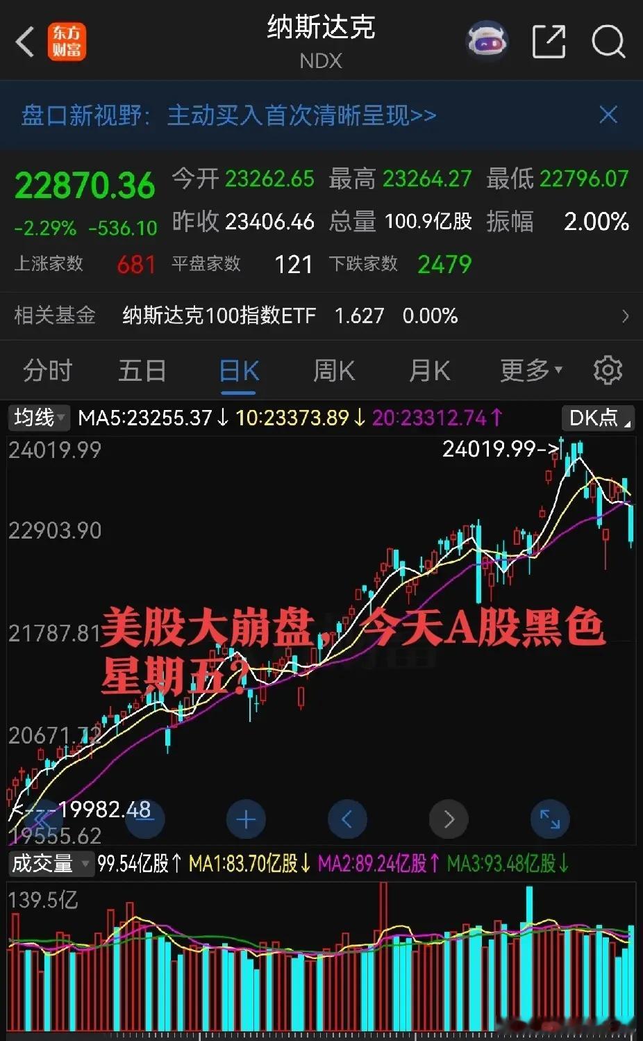 美股大跌叠加两大利空,A股今日恐迎调整?一觉醒来,A股或面临“黑色星期五”的压力——昨夜美股大幅下挫,纳斯达克指数跌超2%,中概股也同步下跌逾1%,背后源于两大利空消息。其一,美国政府重新开门后,前期利好落地,后续各类经济数据将密集公布,市场不确定性显著增加。其二,4-5位美联储官员发表鹰派言论,暗示12月降息概率已降至50%以下,降息预期大幅降温。对于今日A股,大概率走跌。一方面,近期A股与美股上涨逻辑相近,美联储不降息的预期对A股构成直接利空;另一方面,A股自身技术面本就有回踩需求,而美股调整尚未结束,或进一步拖累市场情绪。你认为今日A股会大幅下跌吗?