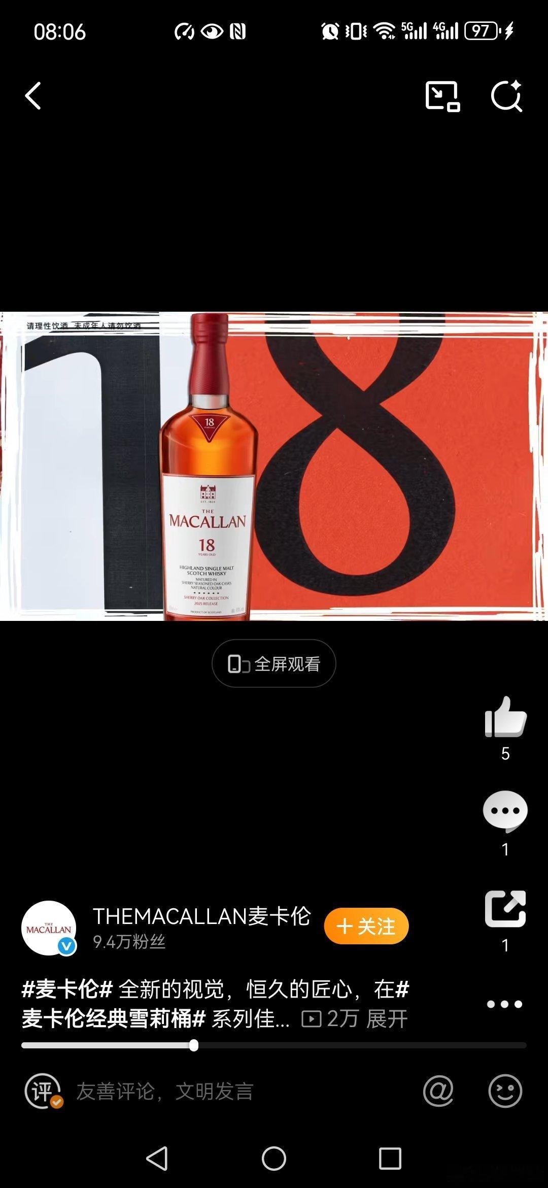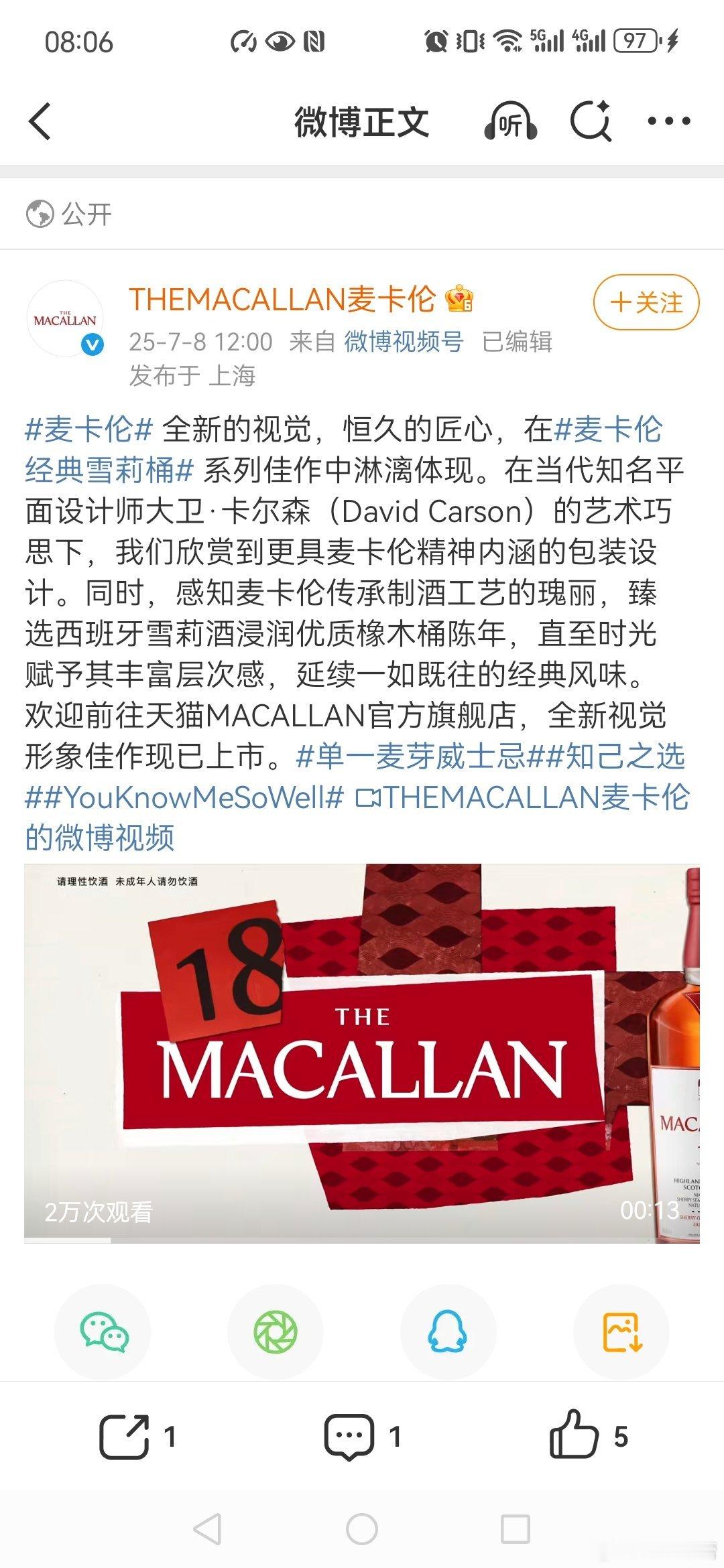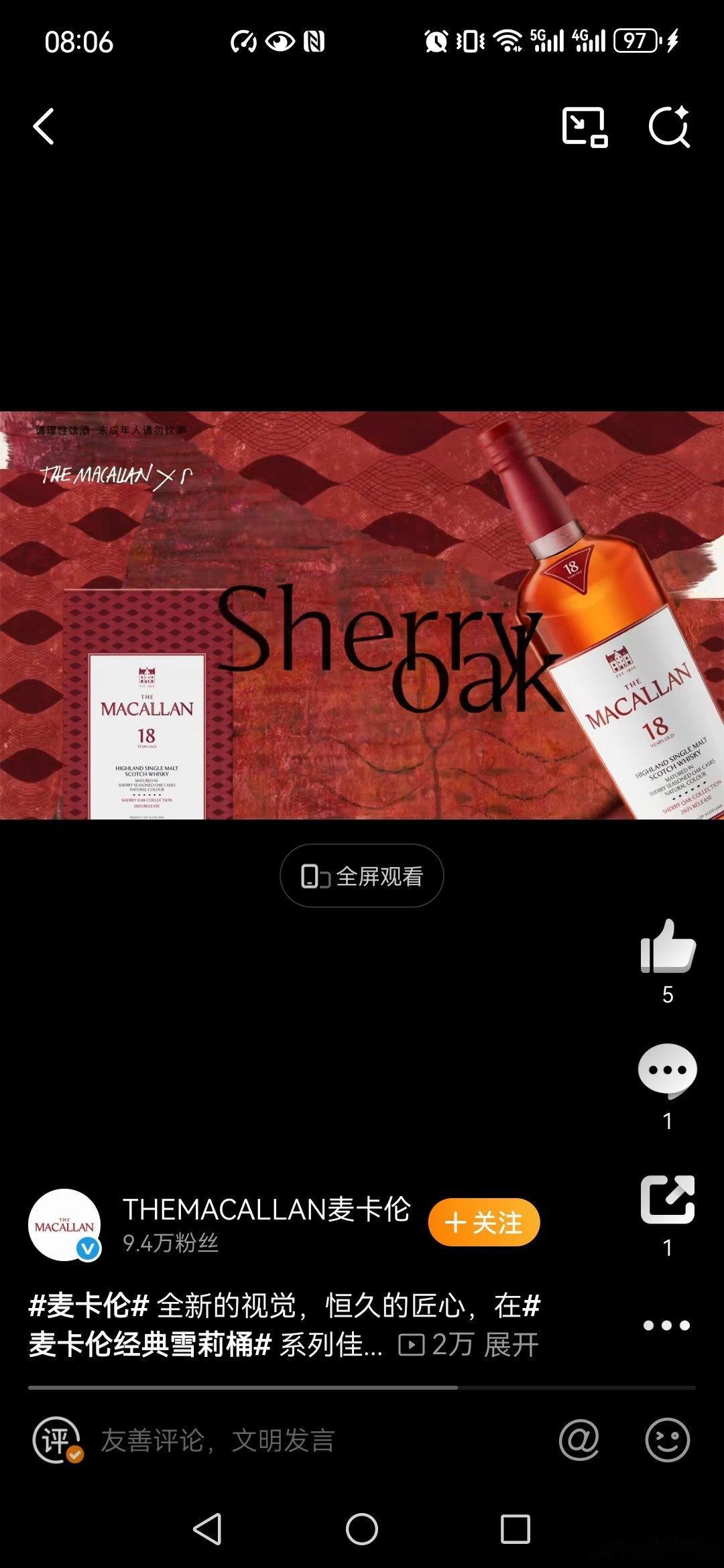 麦卡伦经典雪莉桶我喝过,非常的满意,香气浓郁,口感醇厚,口感不错,其含有以干果(如葡萄干、无花果)、橙皮、香草、肉桂、丁香等,还融合了雪莉酒润养橡木桶带来的木质香料气息,层次感丰富。其酒体饱满,口感如油脂般顺滑,含有干果、太妃糖和黑巧克力等甜味感,与辛香料的微苦形成平衡,余味悠长,令人回味无穷,特别是带有香料和木质的回甘。 麦卡伦经典雪莉桶包装设计我也很喜欢,其视觉感好,麦卡伦携手知名设计师大卫·卡尔森对经典雪莉桶系列进行了完美升级,其采用标志性的“麦卡伦红”包装,其瓶身设计融入了酒厂丘陵屋顶的弧线元素,瓶肩新增红色倒三角标志,象征雪莉桶的原产地“雪莉三角洲”,整体设计升级,还兼具艺术感与品牌历史传承。