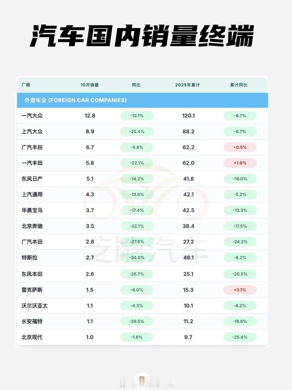 10月以油车为主的外资/合资在终端的销量受到了不小的影响,主要是有几点1)2024年在Q4,是外资品牌销售推动的时间点,到了现在10月这个点,很难像去年一样去大力度销售,所以整体的销量和去年冲量的劲头差异是不小的2)现在买油车,很大的因素,是相对保守的群体看到过往的产品价格变化。也确实是把和用电的成本差异考虑进去了,所以油车触及的消费群体的范围是确实缩减的我们接下来等一波油车智能化和购置税变化之后,油车还能否找到自己的持续消费群体。