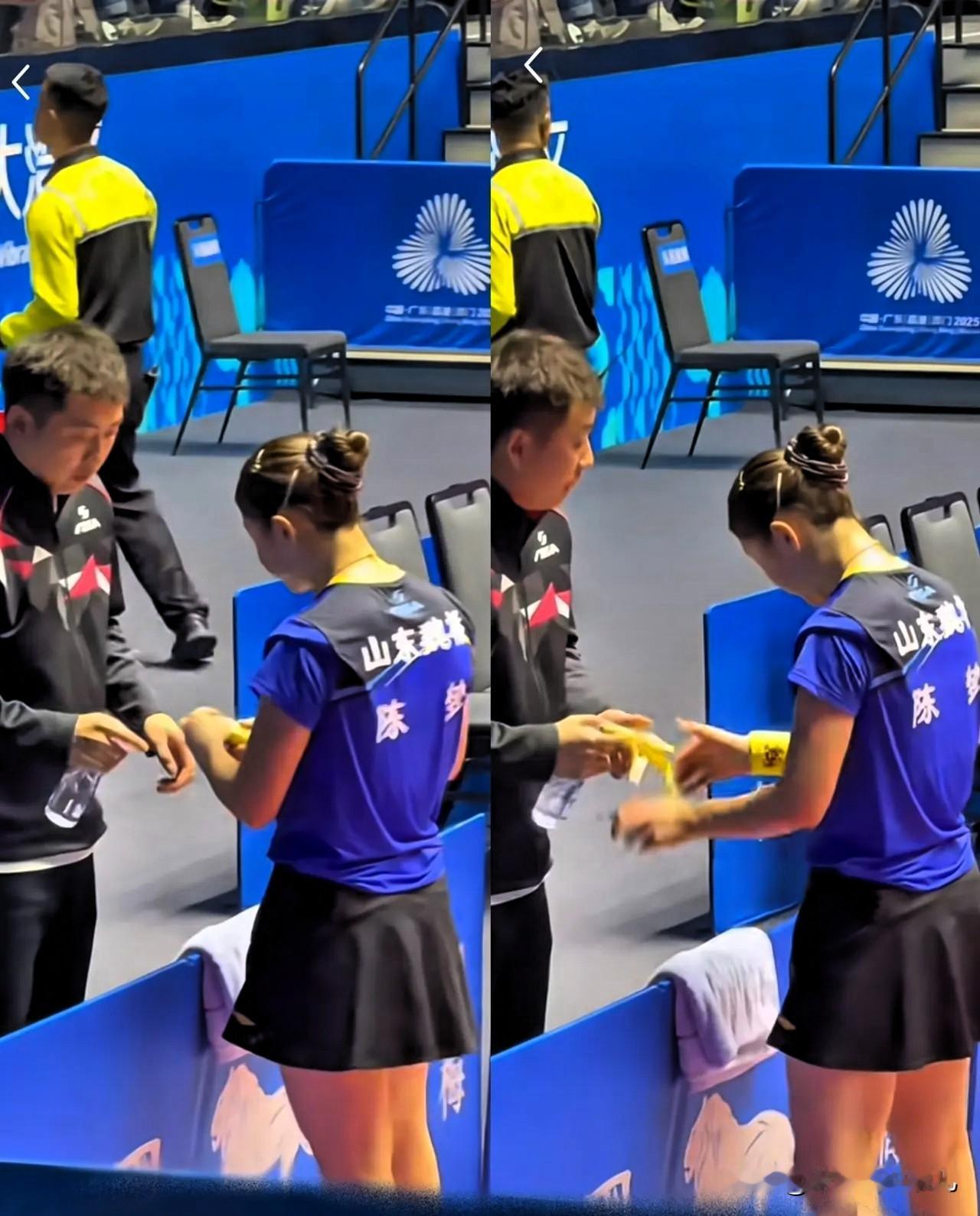 一个动作, 再次证明了陈梦的人品 陈梦和蒯曼的比赛中,陈梦的人品真的是展现出来了。两人比赛的时候,陈梦中间休息的时候吃了半根香蕉。 吃完后没有随手一扔,而是将香蕉皮整理得整整齐齐的,又用双手将那半根整齐的香蕉递给教练。 看到没有,山东大妹子就是实在,这细致的举动,这体贴的举动,真的是考虑到别人了。 这善良,真诚,体贴,比任何冠军光环都让人觉得暖,比任何冠军获得的名额都让人觉得温馨。 你说呢? 还是说运动员的教养更吸引人一些,还是说他(她)取得的成绩更吸引人一些呢?欢迎在评论区讨论!
