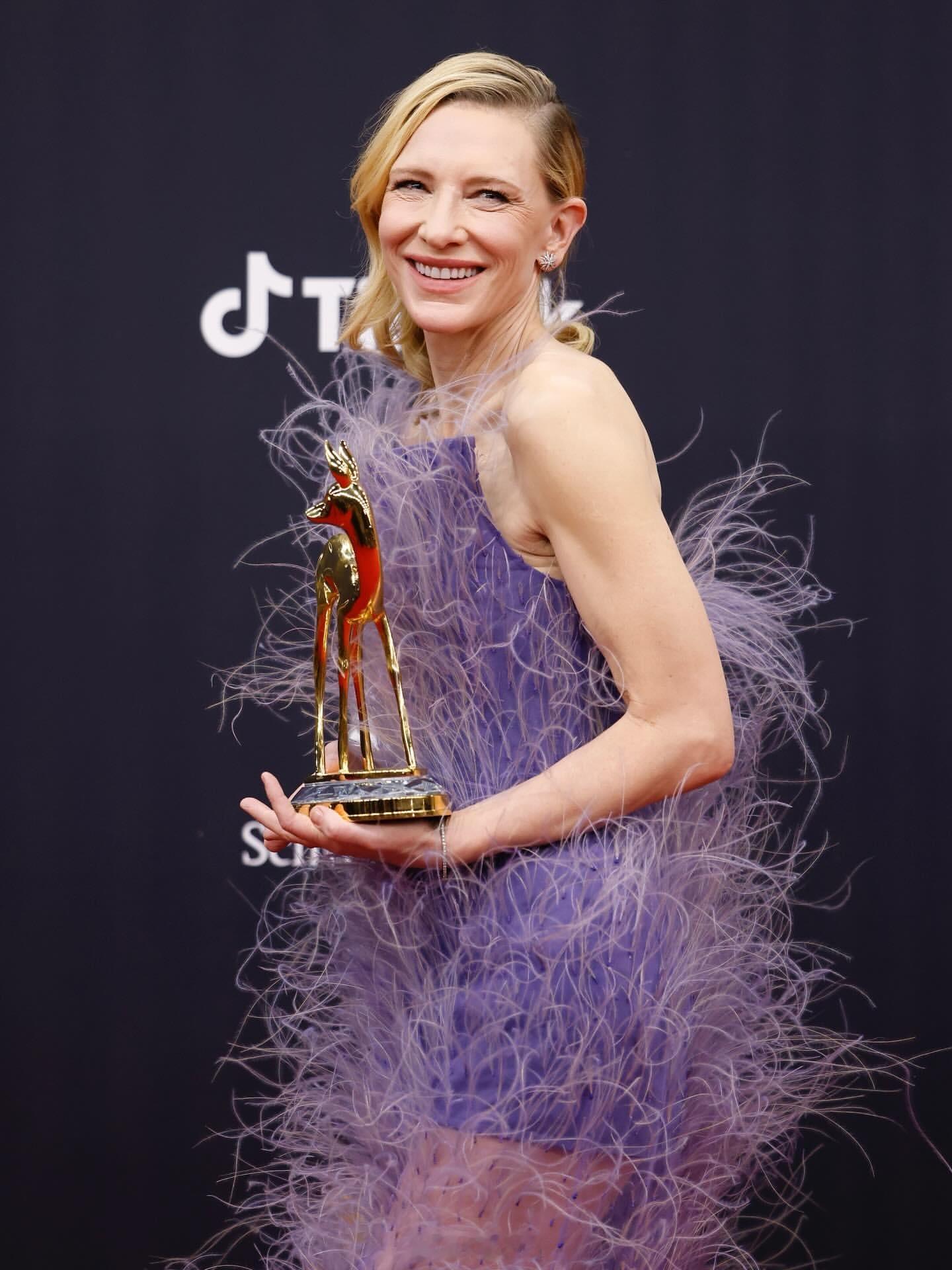 毛茸茸的紫色大魔王💜,俏皮小仙女——恭喜凯特·布兰切特 ,荣获2025 Bambi斑比奖,年度杰出国际女演员🏆🦌,可可爱爱~ 斑比奖是德国最负盛名的媒体类大奖,表彰全球各领域(媒体、艺术、文化、体育等)“有远见和创造力、能触动德国公众”的杰出人物,是德国历史最久的媒体奖项之一,祝贺凯特。