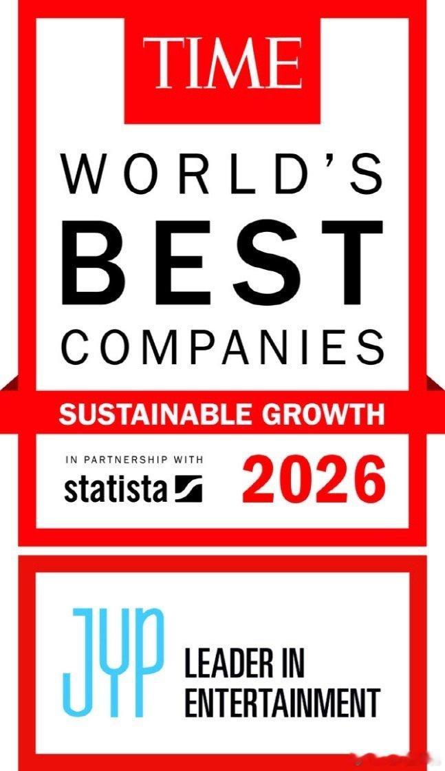 JYP娱乐荣获美国时代周刊评选的“2026年可持续发展企业”全球第一 JYP娱乐在美国《时代》周刊评选的“2026年世界最佳可持续发展企业”中,不仅连续2年获得国内第一,今年还荣登世界第一。 12日(当地时间)周刊《时代》和德国市场分析企业Statista正式公布了“2026年世界最佳可持续发展企业”(World's Best Companies in Sustainable Growth 2026)名单。JYP在增长率、财务稳定性、环境影响等各个指标上都获得了很高的评价,共计97.59分。这是韩国第1名,也是全世界500家企业中第1名的成绩,证明了独步的增长势头。