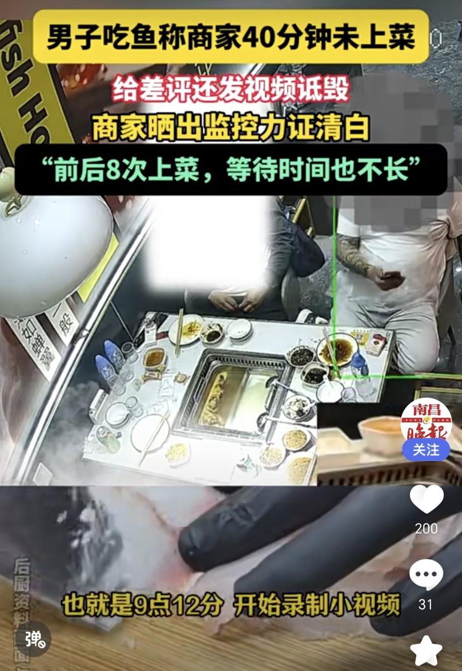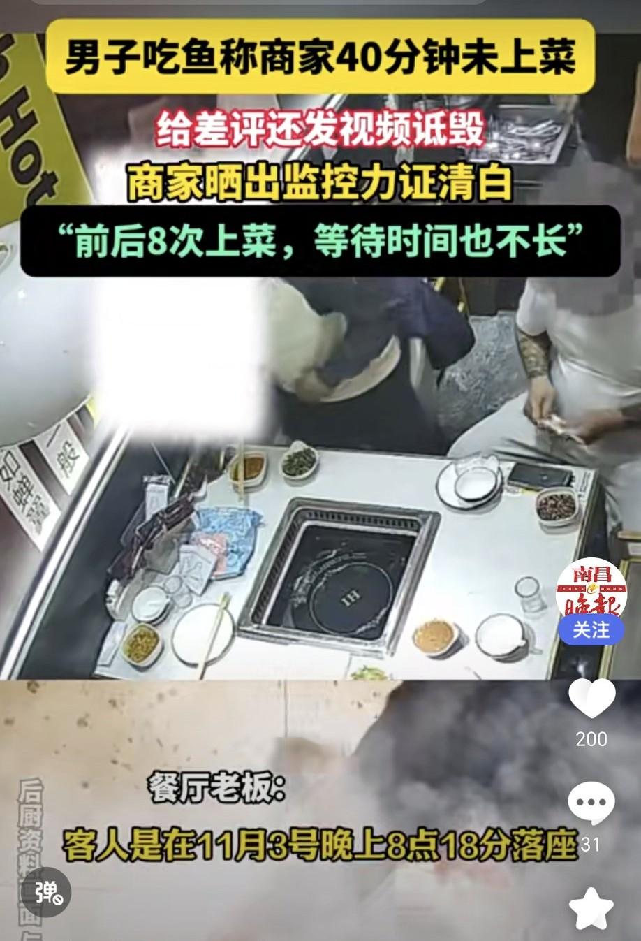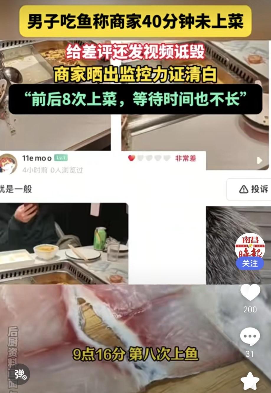 辽宁有个男子发视频说吃火锅等40分钟都没上鱼,还指责商家欺负他。店家监控一公布,好家伙,全程上了8次鱼。 从监控能看到,男子刚坐下三分钟锅底就上桌了,之后一小时店员忙个不停,添鱼、上菜、倒茶,还及时收拾空碟。男子吃得那叫一个自在,脸上毫无不满。结果转头就在网上抱怨被怠慢,还配截图要给差评。店家老板调出监控自证清白,直言公道自在人心。 A网友:是不是竞争对手故意来找茬打差评的?正常人谁会故意扯谎来黑这些?这明显是来砸场子的呀!既然有监控作证,应起诉这名顾客恶意诽谤。 B网友:花臂黑社会呀?都2025年了,到处是监控的年代,还想靠讹人赚零花钱?是不是觉得快过年了,得进看守所混年夜饭?监控一出手,谣言抖三抖!诚信经营,点赞! C网友:这种恶意造谣,低成本诽谤的事件,就是因为诬陷无成本,所以干的人越来越多。必须让当事人接受法律的约束和惩罚。吃不起鱼,就别出去丢人现眼,这下丢人丢大发了吧? 俗话说的好:天下之大,无奇不有。每几百个消费者中,总会藏着那么一两个“人才”或者奇葩,遇到了,有些人本着大事化小,小事化了的心态,往往都会选择忍让。在证据确凿的情况下,要像这家店老板的做法一样,硬刚回去,千万别增长了坏人的嚣张气焰。这也提醒大家,网络发言得讲证据,网友们也别被有心人的片面之词所误导。