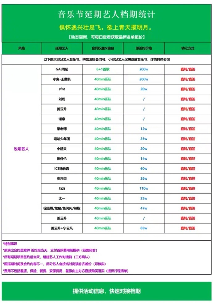网传歌手参加音乐节报价