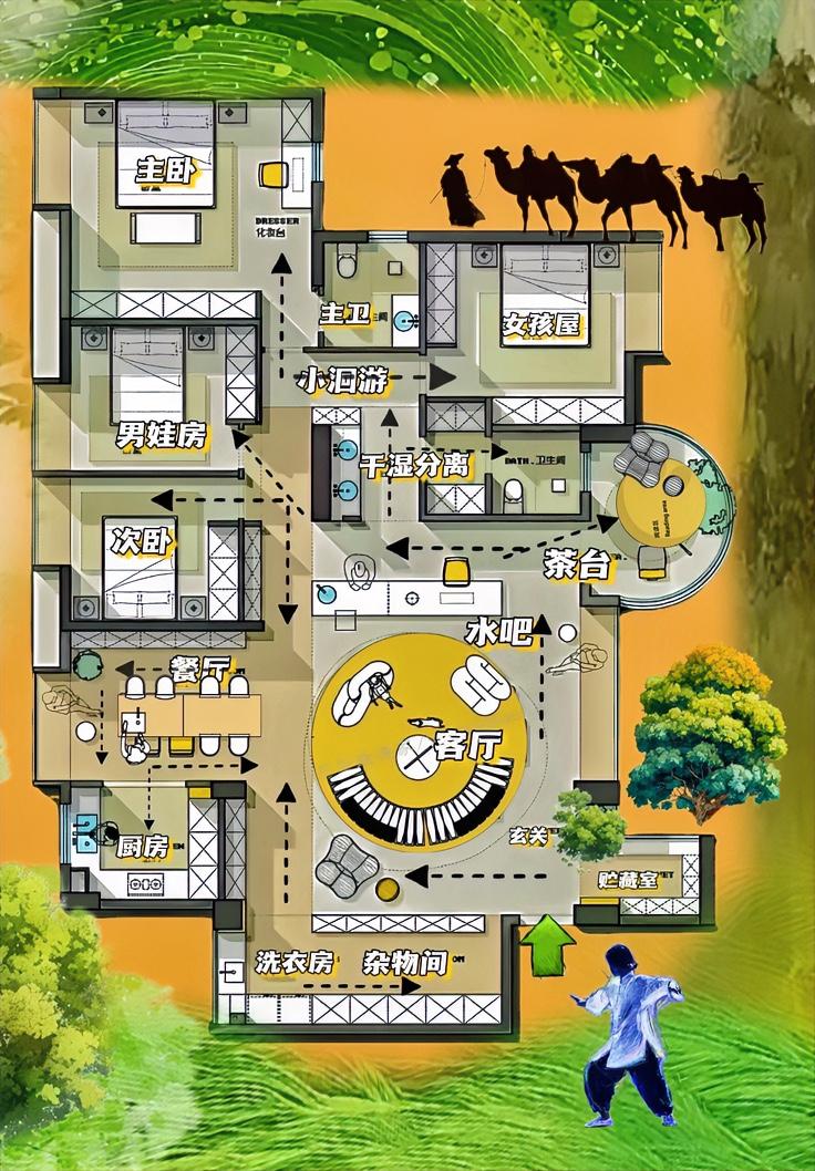 老祖宗的眼光真的毒啊,160㎡没差的,玄关嘎了,大横厅,上通工作台,下藏洗衣房,