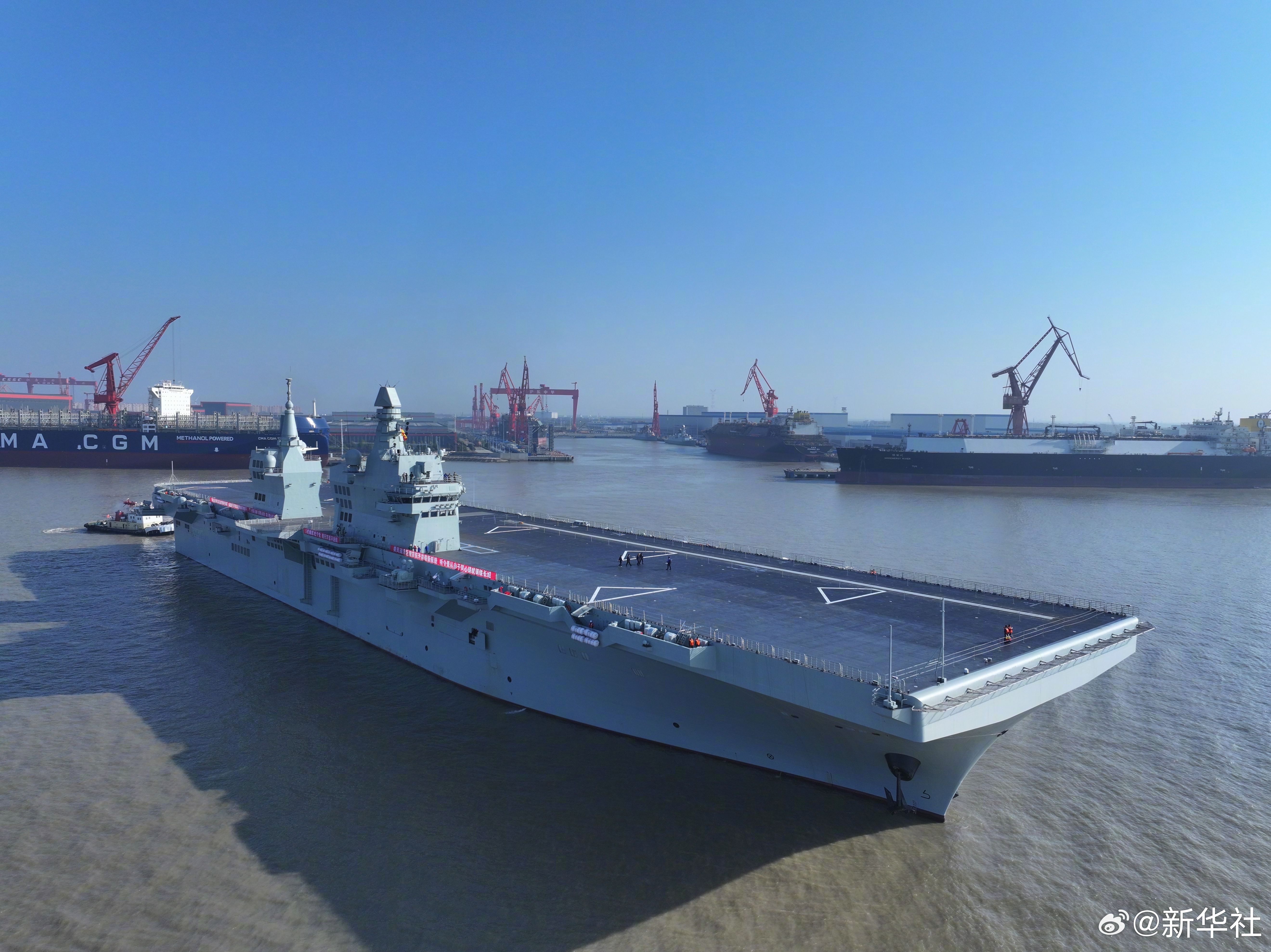 【海军】11月14日9时许,我国076两栖攻击舰首舰四川舰从上海沪东中华造船厂码头解缆启航,赴相关海域开展首次航行试验任务。
