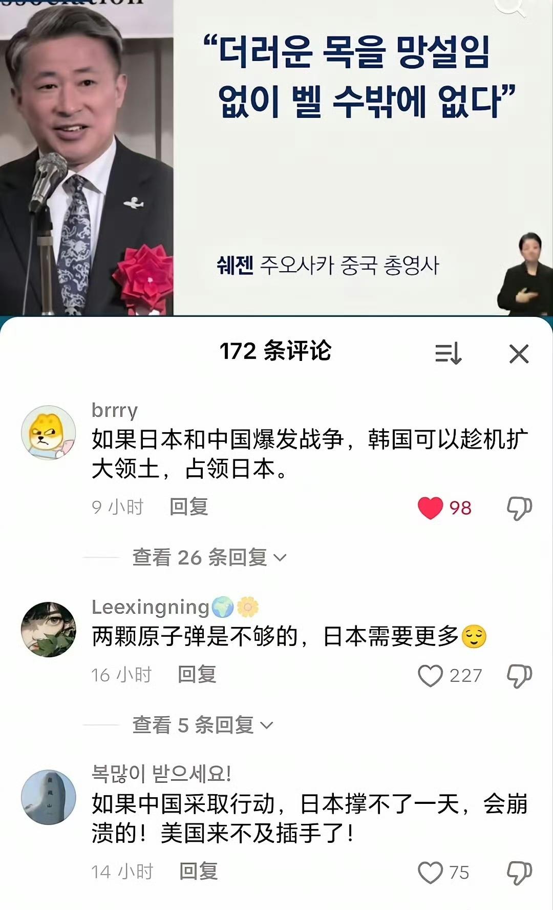 关于高市早苗的有事言论,韩国网友给出的答案。韩国网友貌似很兴奋啊!