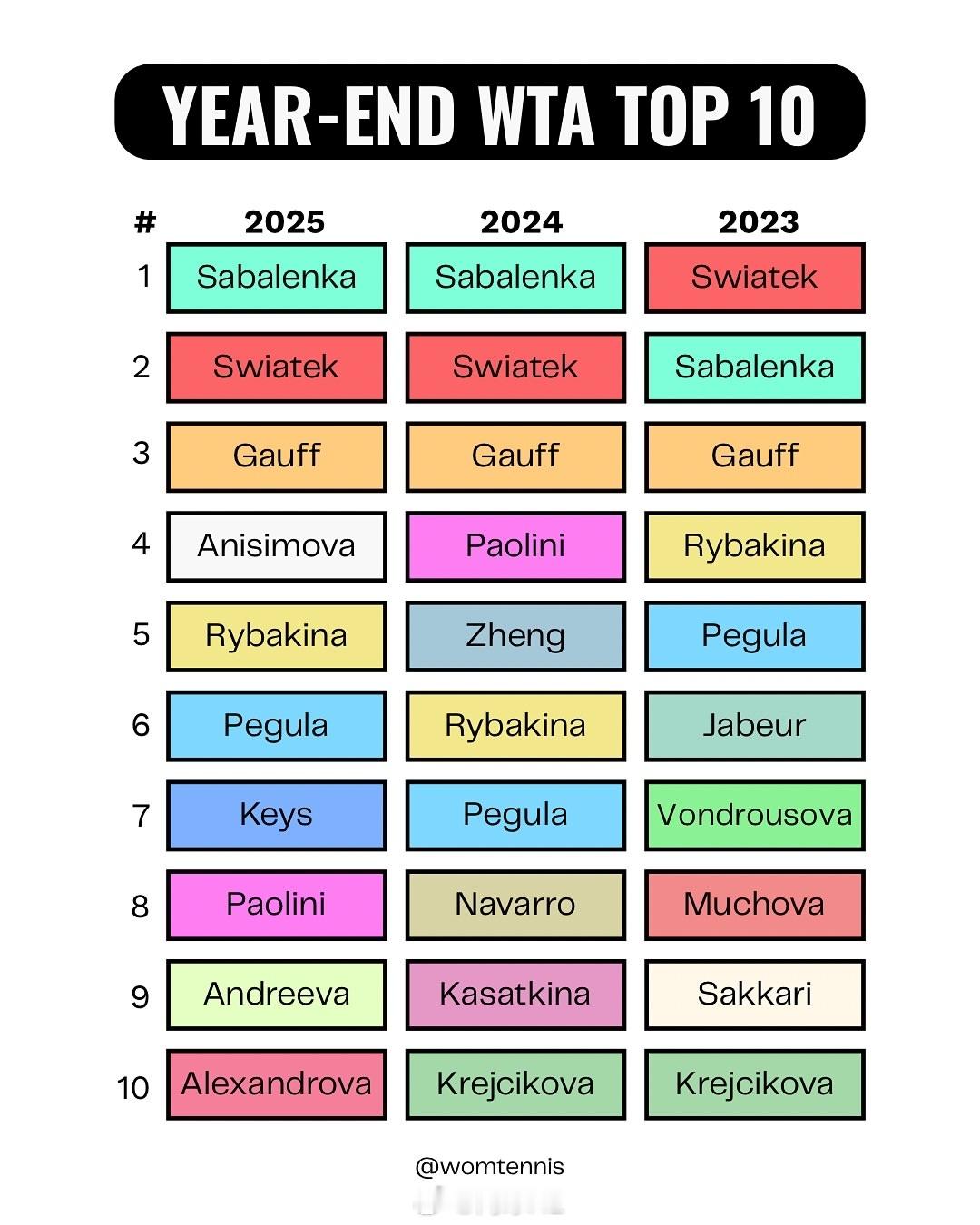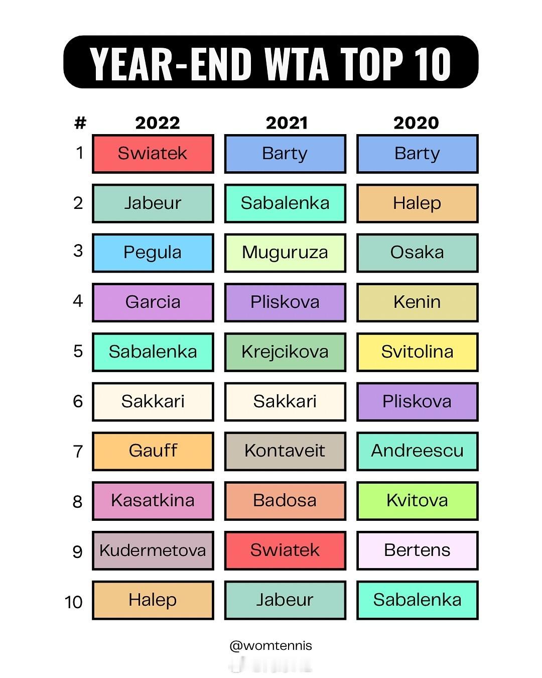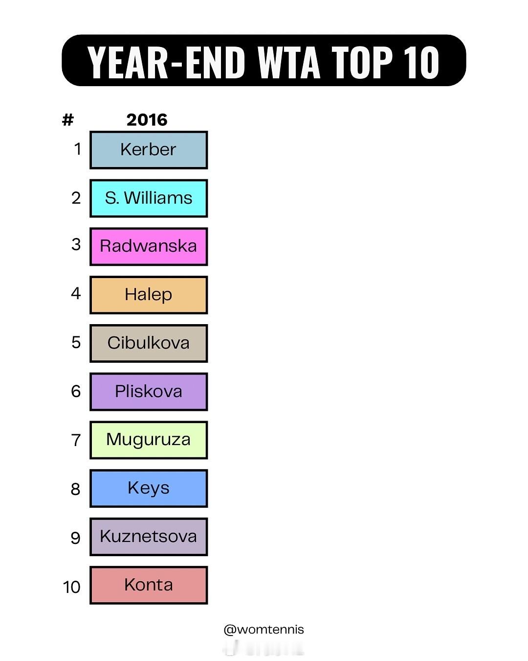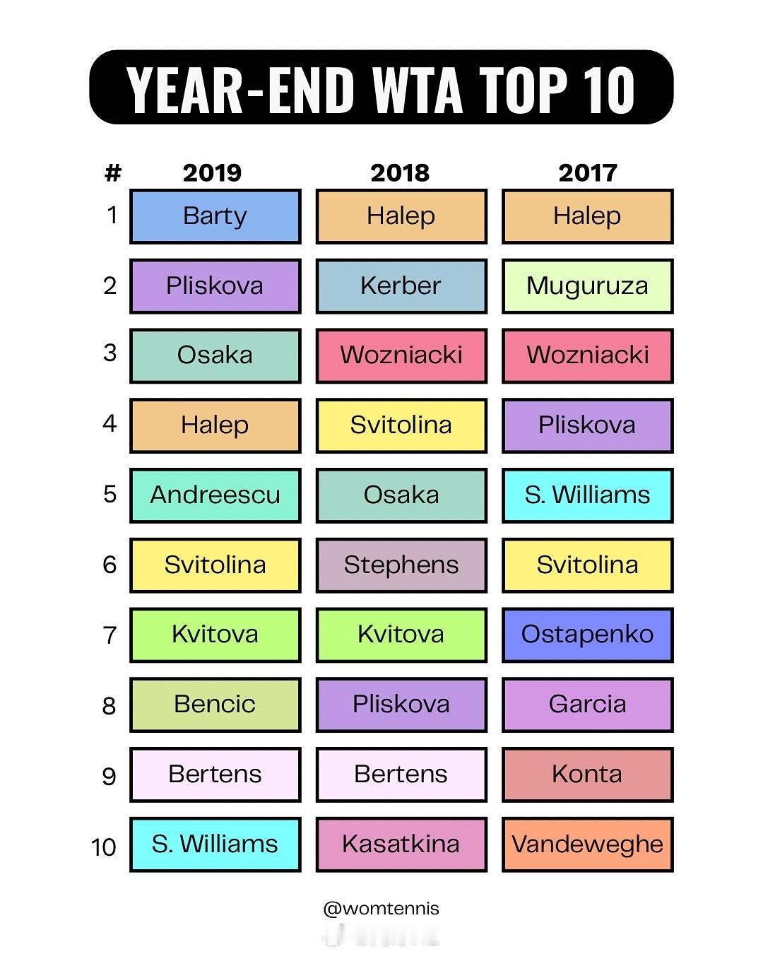 近十年的女单年终世界Top10你对哪一年的排名印象最深刻?