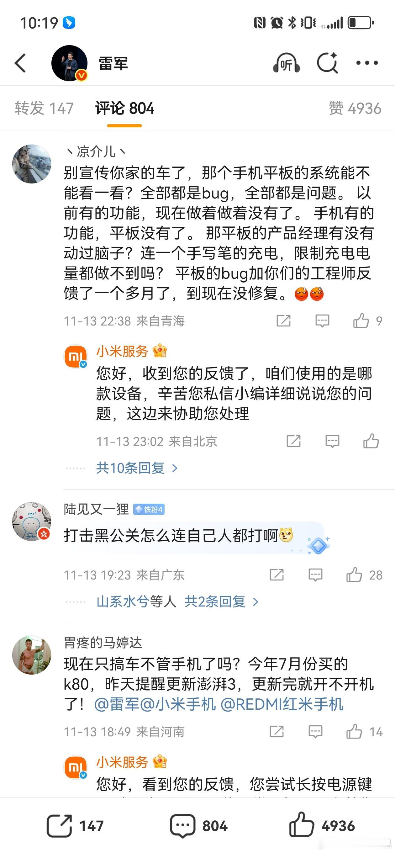 建议小米还是控一下评吧不然军哥看到多难受啊