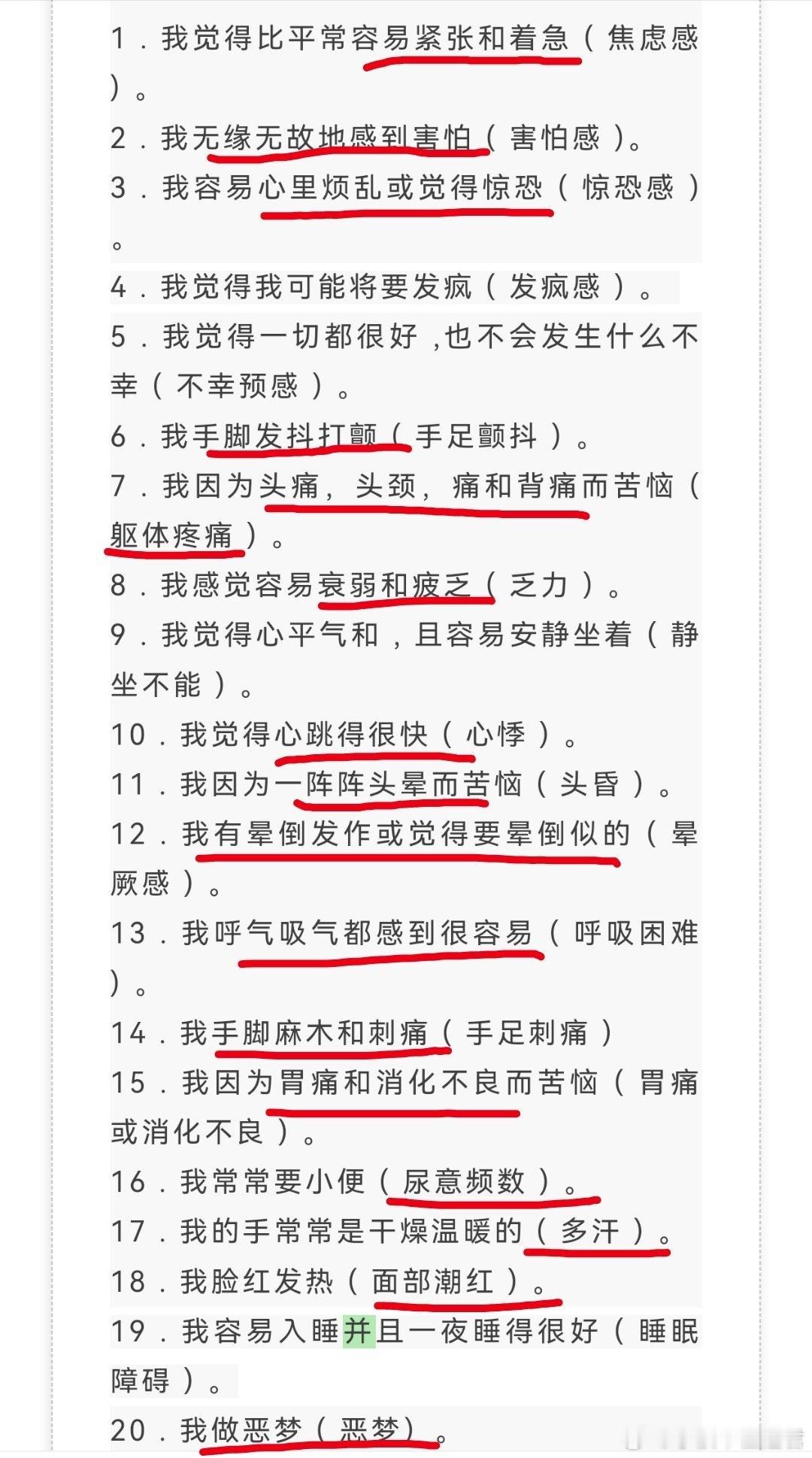 大家看看这个焦虑自评量表里的症状,是不是觉得有点诧异?很多你想不到的症状,其实是