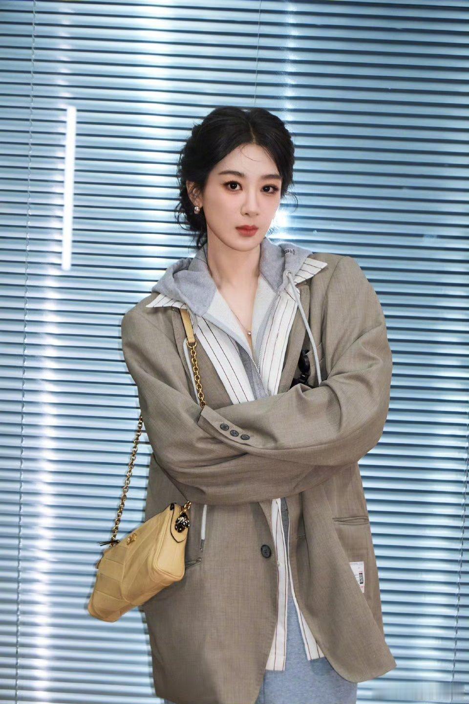 刘亦菲把死亡玫粉穿出了定制款的感觉,这种颜色普通人穿上分分钟黑三度,她居然能穿出