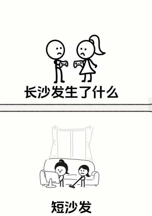 长沙发生了什么,这个一时间没反应过来,原来是长沙发-生了-短沙发。