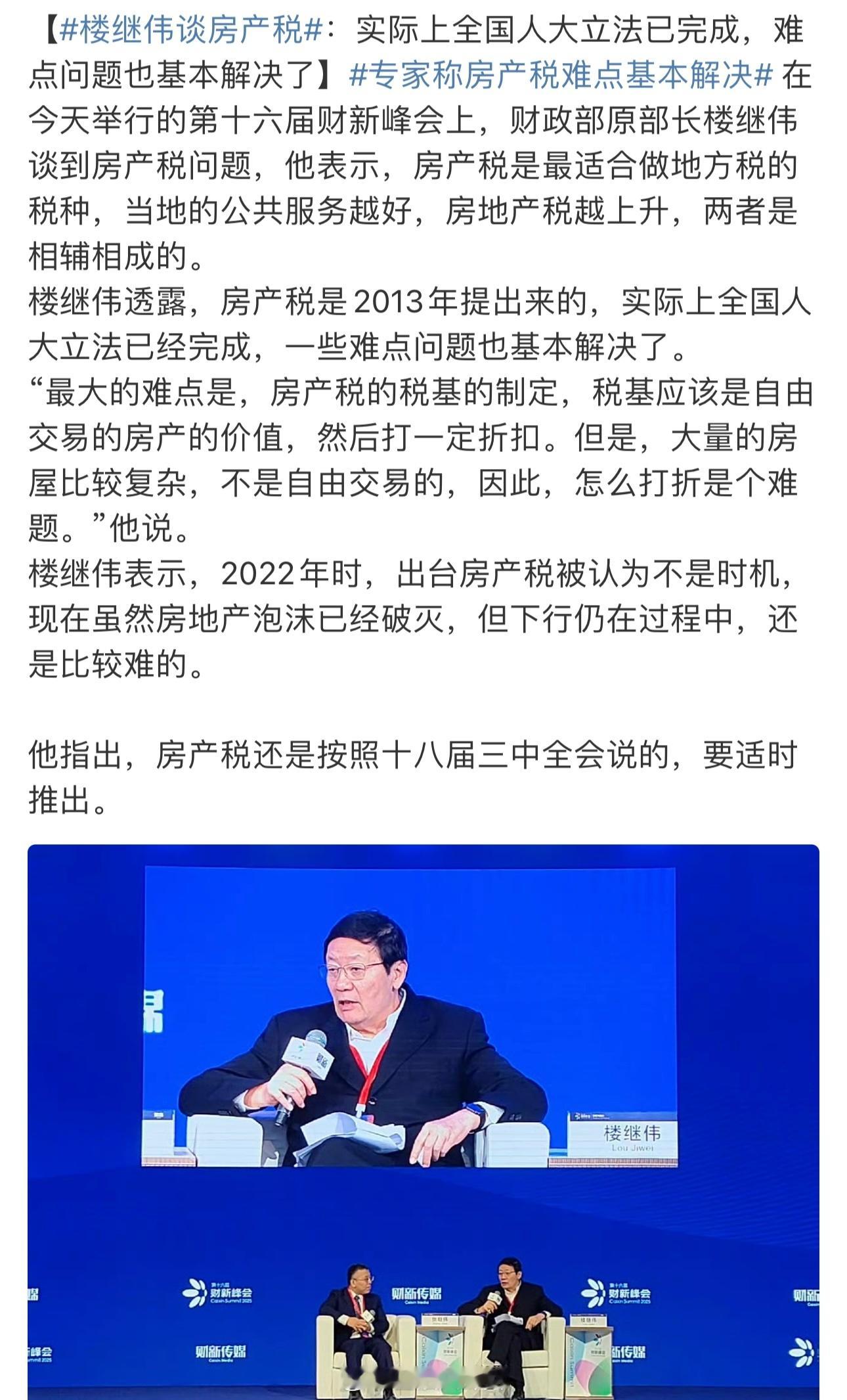 :实际上全国人大立法已完成,难点问题也基本解决了