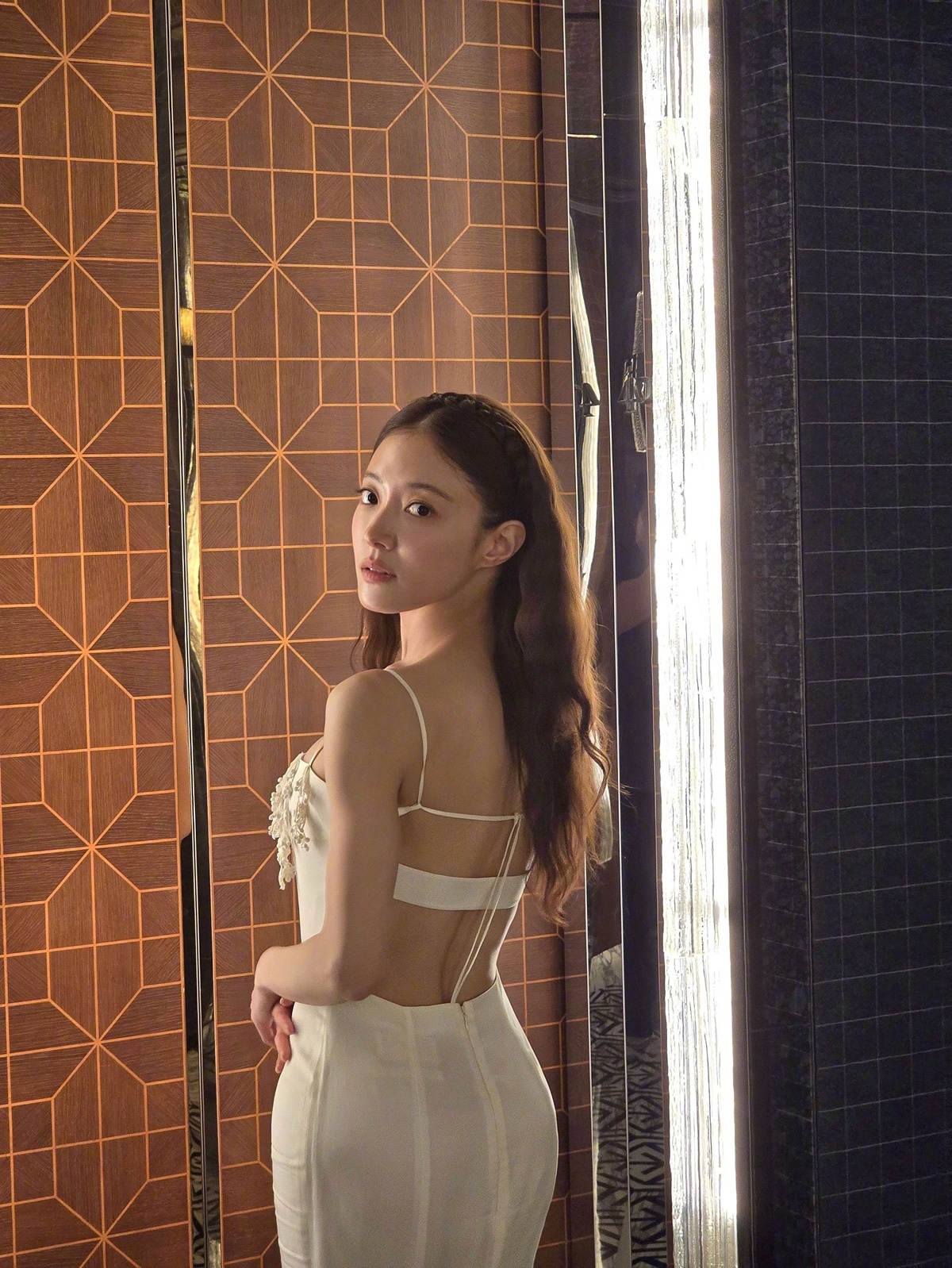 刘亦菲把死亡玫粉穿出了定制款的感觉,这种颜色普通人穿上分分钟黑三度,她居然能穿出