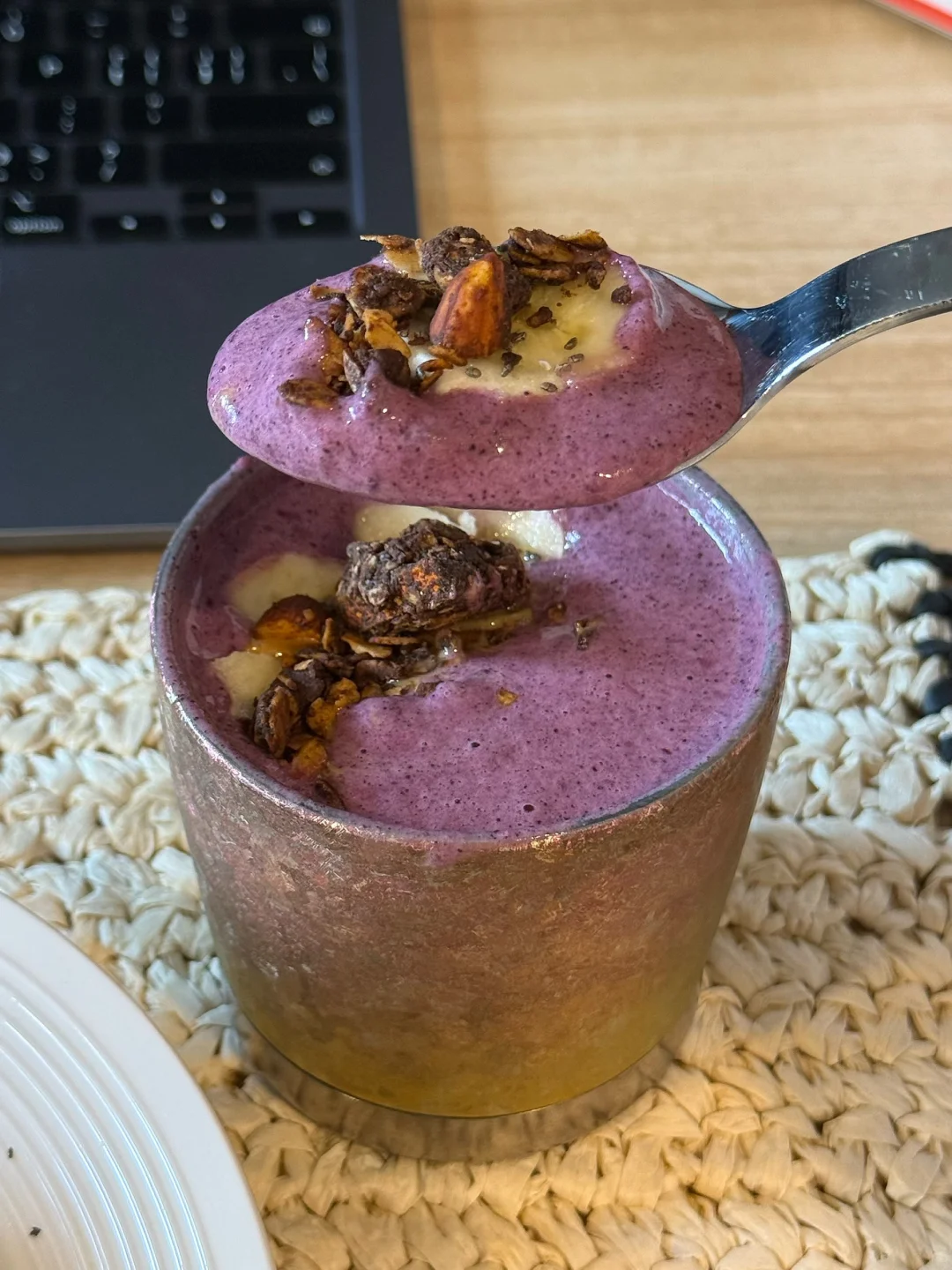 💜我放的这款蛋白粉味道不会甜腻,平时有在身材管理的姐妹可以试试这个搭配!最近恢复健身真的少不了补.充足量的蛋白质~满满一杯花青素~蛋白质报表!!!不仅有营养还超好喝!