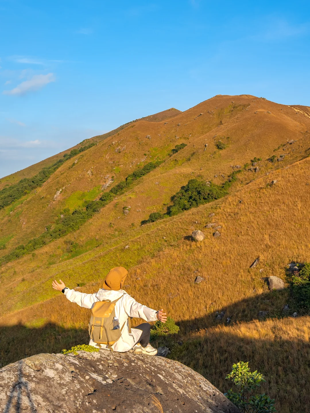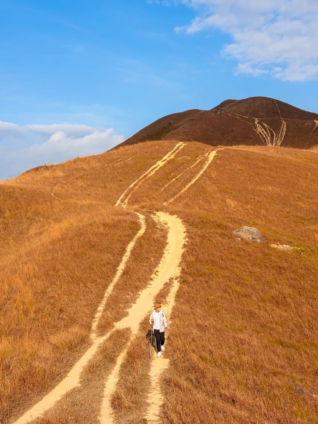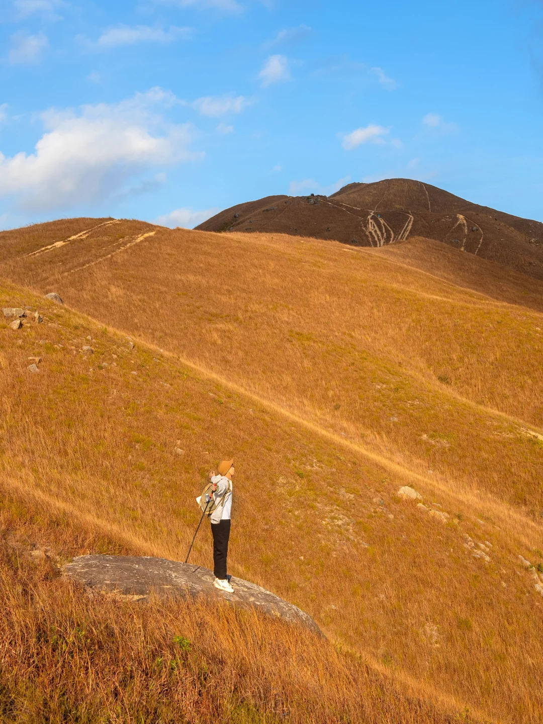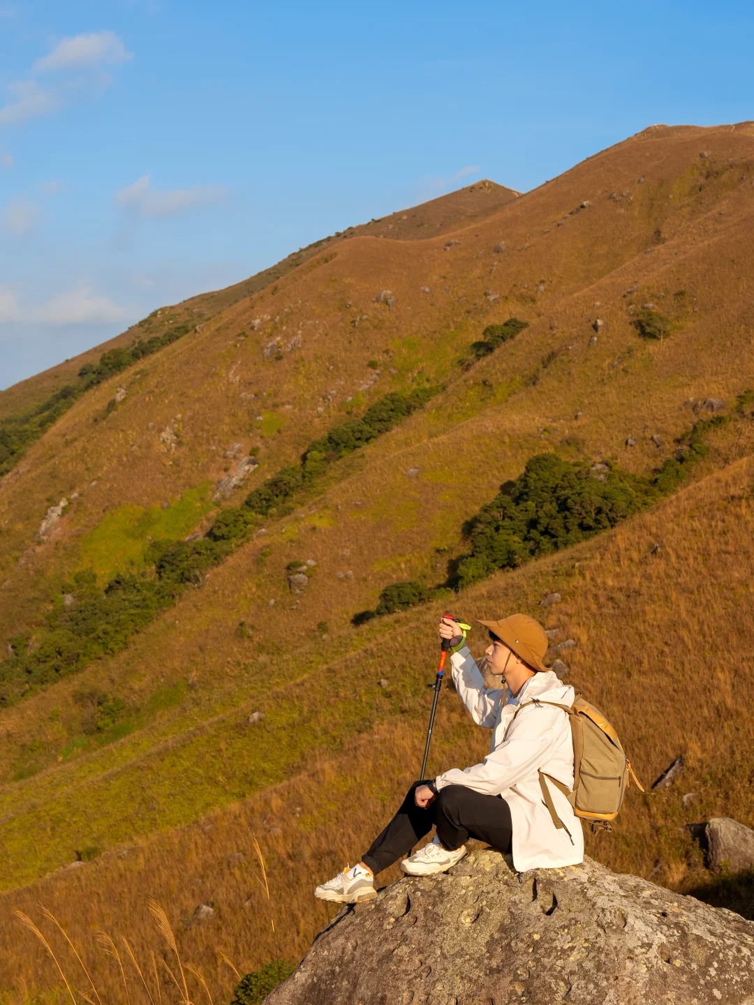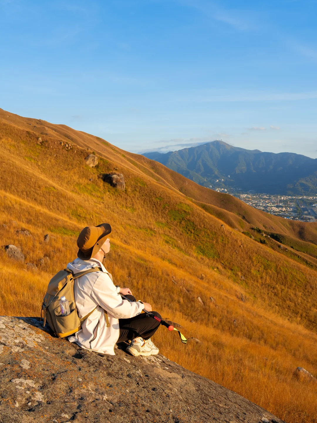 11月的香港开始迎来了芒草季,不管是鸡公岭、大东山还是大帽山都是非常值得推荐的徒步地,随着天气降温,对户外爱好者来说太友好了。 📍地点:香港鸡公岭 🚌交通 ➬去:福田口岸➠东铁线上水站换乘77K➠桥头站 ➬返:76K逢吉乡➠新田运输交汇处换乘B1➠落马洲总站 📷设备:索尼a7m4 ✅徒步攻略 ❶交通友好,离深圳特别近,我选择反穿更快登顶,坐巴士也会稍微方便点。 ❷从桥头登顶大约2小时,跟自身体力有关系。 ❸只要下午两点之前到就有足够的时间拍摄,特别是日落时分,拍金色的芒草更加出片。 ❹如果想要出片的话,阴天不建议去,出片效果会大大折扣。 ❺日落之后需要快速下山,一定要结伴而行。 ✅户外Tips ❶户外无补给,需带1.5L以上的水和路餐。 ❷登山杖头灯一定要带,以防抹黑下山。 ❸山野无痕,文明徒步,请将垃圾带走。