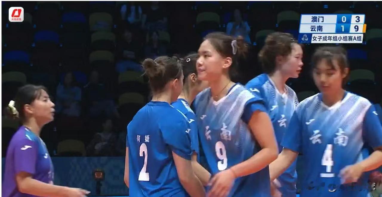赢球了,赢球了,云南女排终于赢球了,此前五轮比赛全部输球的云南女排,今天3-0零封澳门女排,三局比分分别为25-10、25-18、25-15。 澳门队算是业余球队,所以和专业队还是差距太大了,但是澳门女排球员对排球确实热爱,得一分都非常开心,她们的一传防守还可以,加油! 云南队目前战绩为1胜4负,15日16:00 小组赛最后一战,云南队vs北京队;澳门队5连败,明晚19:00将挑战四川队 ​​​。 云南女排的庄心如是颗好苗子,扣球力量很大,但技术不够细腻,还需要优秀教练雕刻,小姑娘年龄较小,好好努力,还有机会,加油,加油!