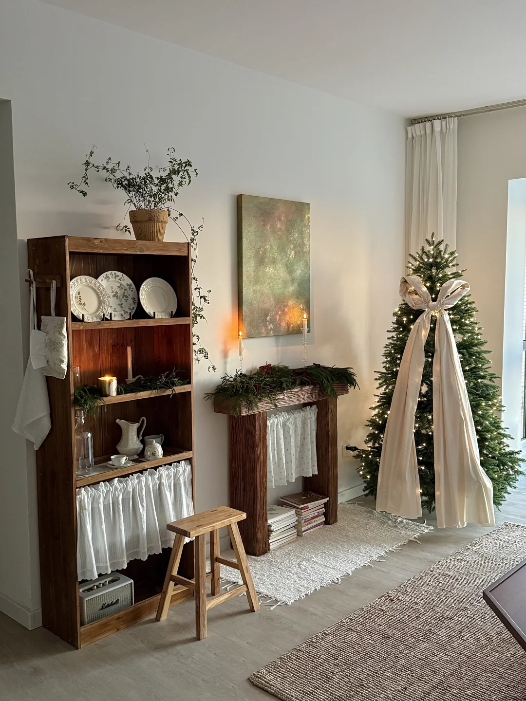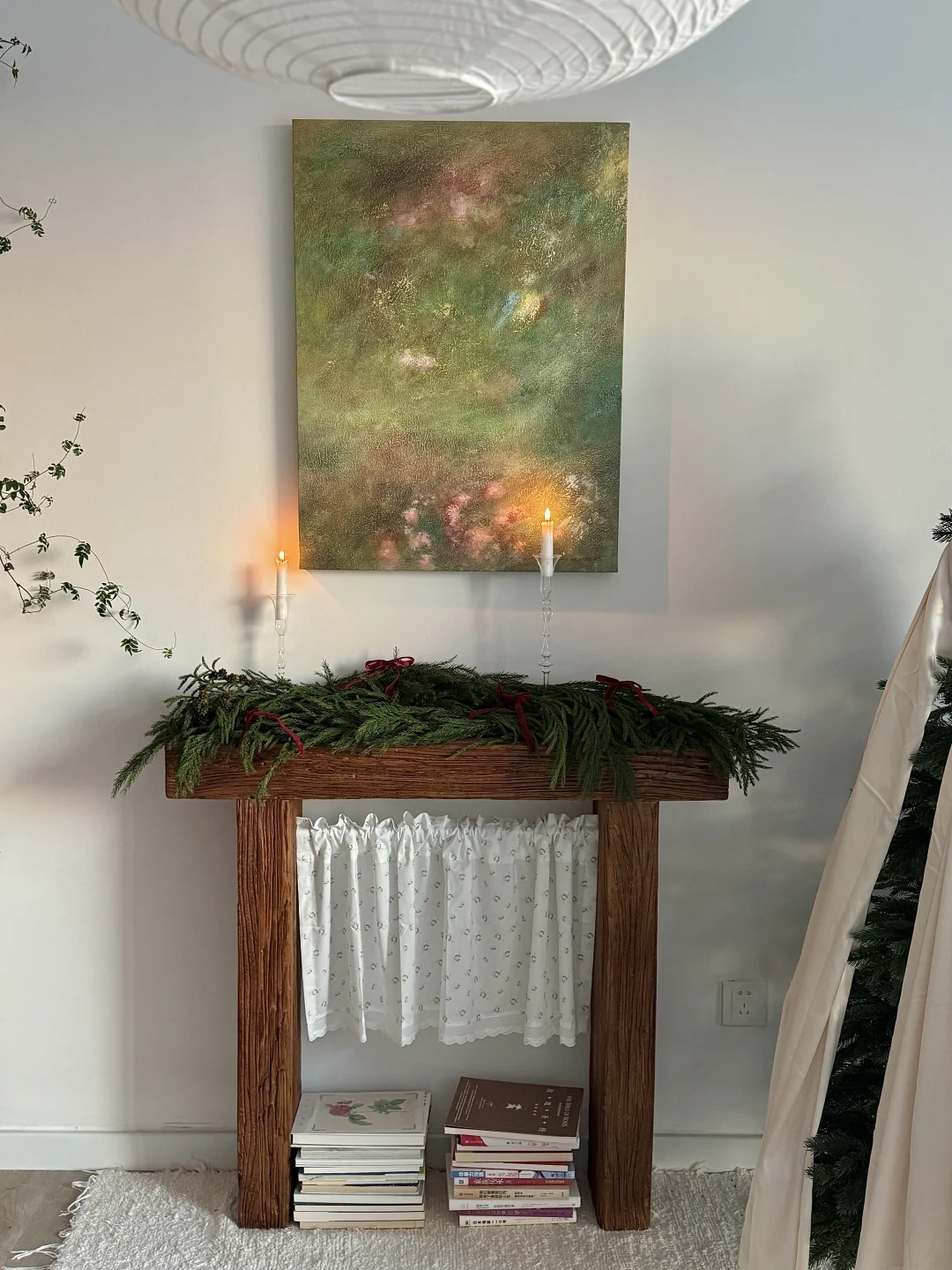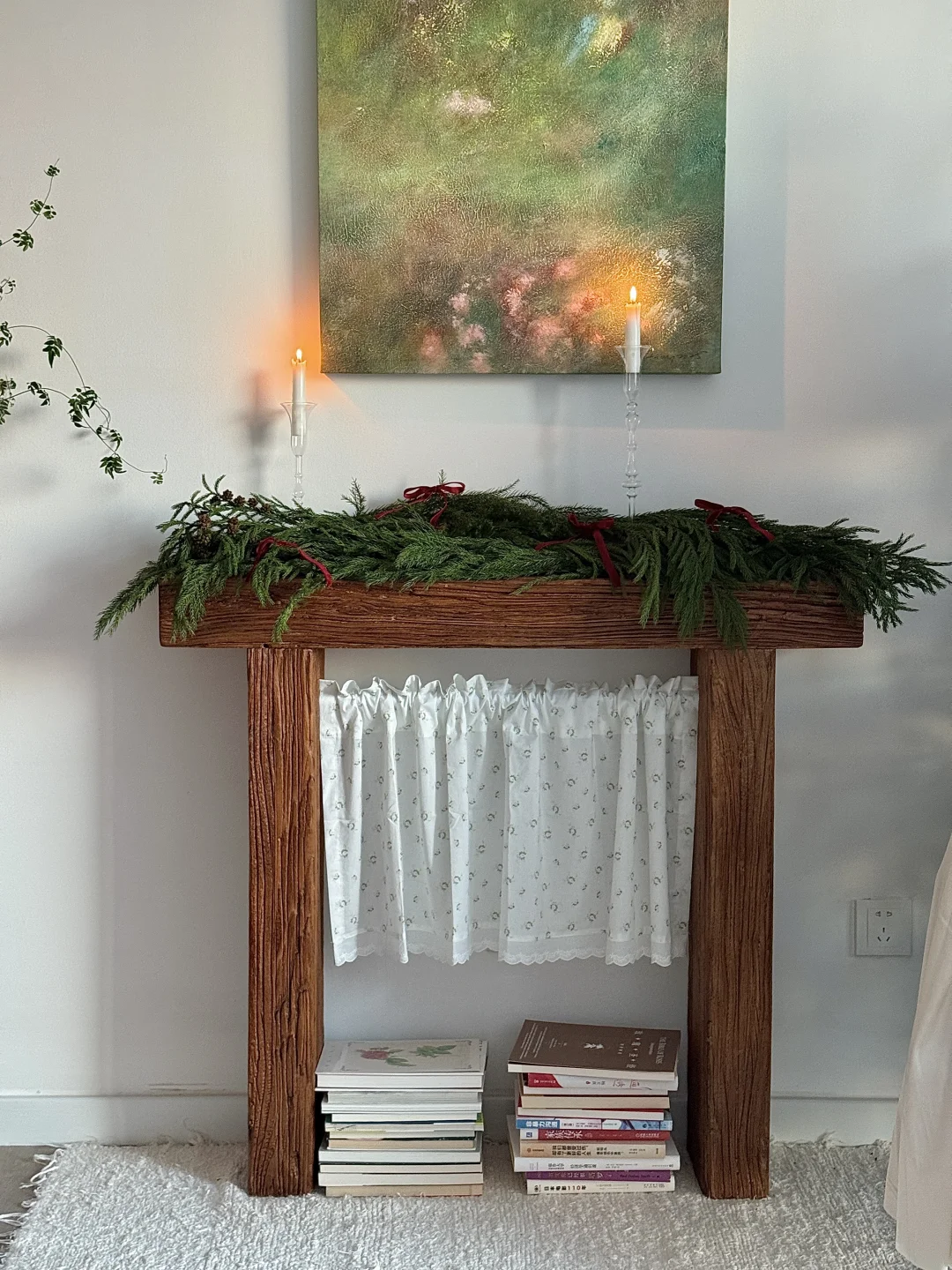 自己的手作复古柜和榆木壁炉也有圣诞装扮了