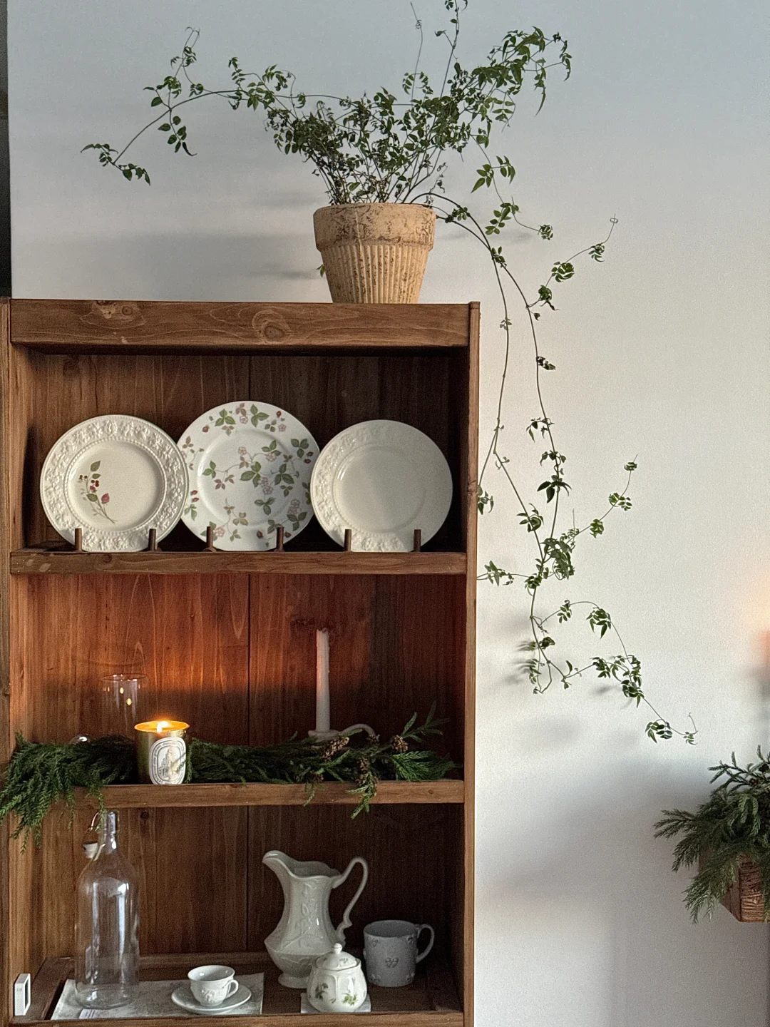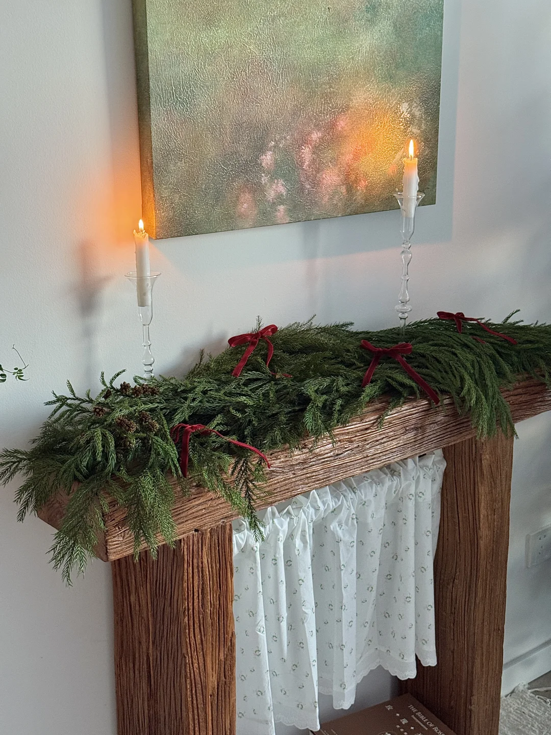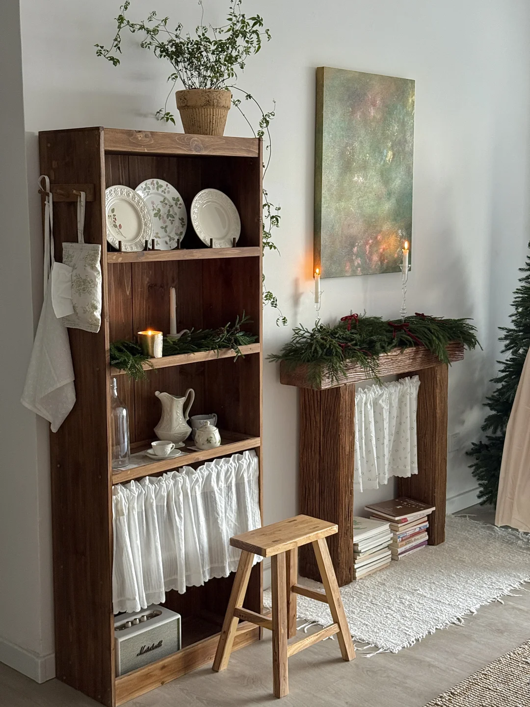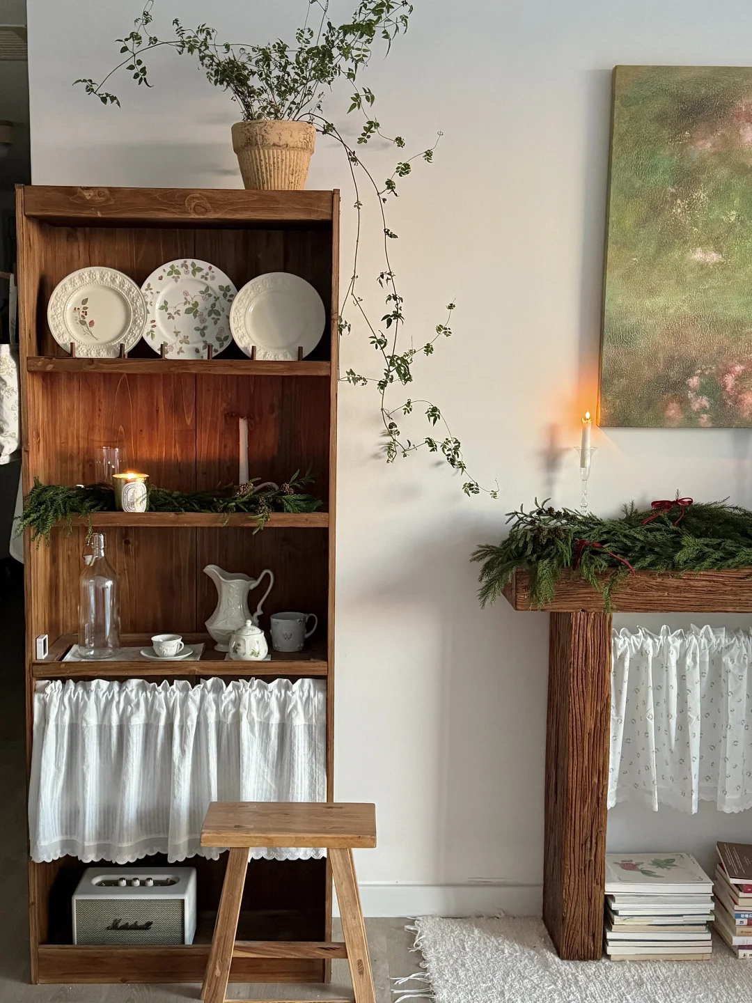 自己的手作复古柜和榆木壁炉也有圣诞装扮了