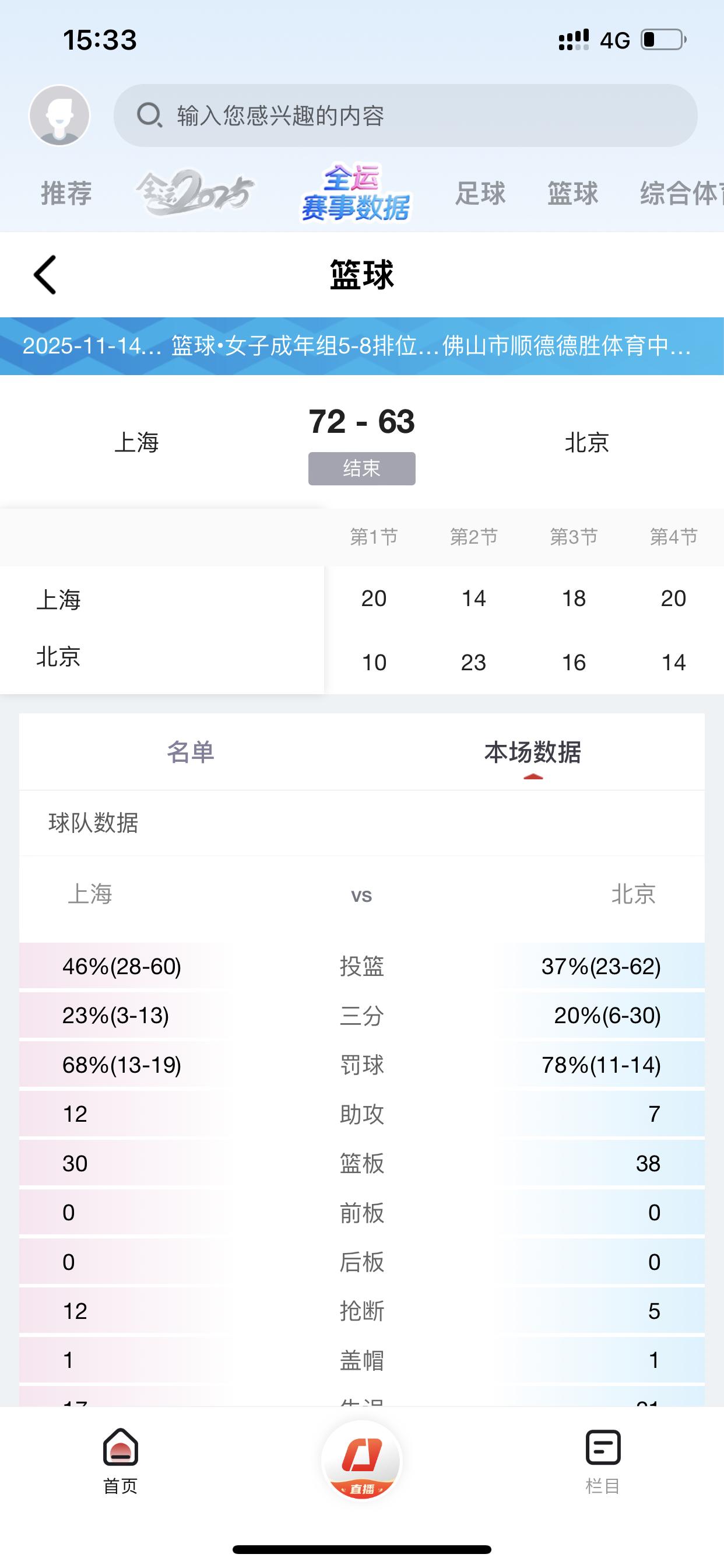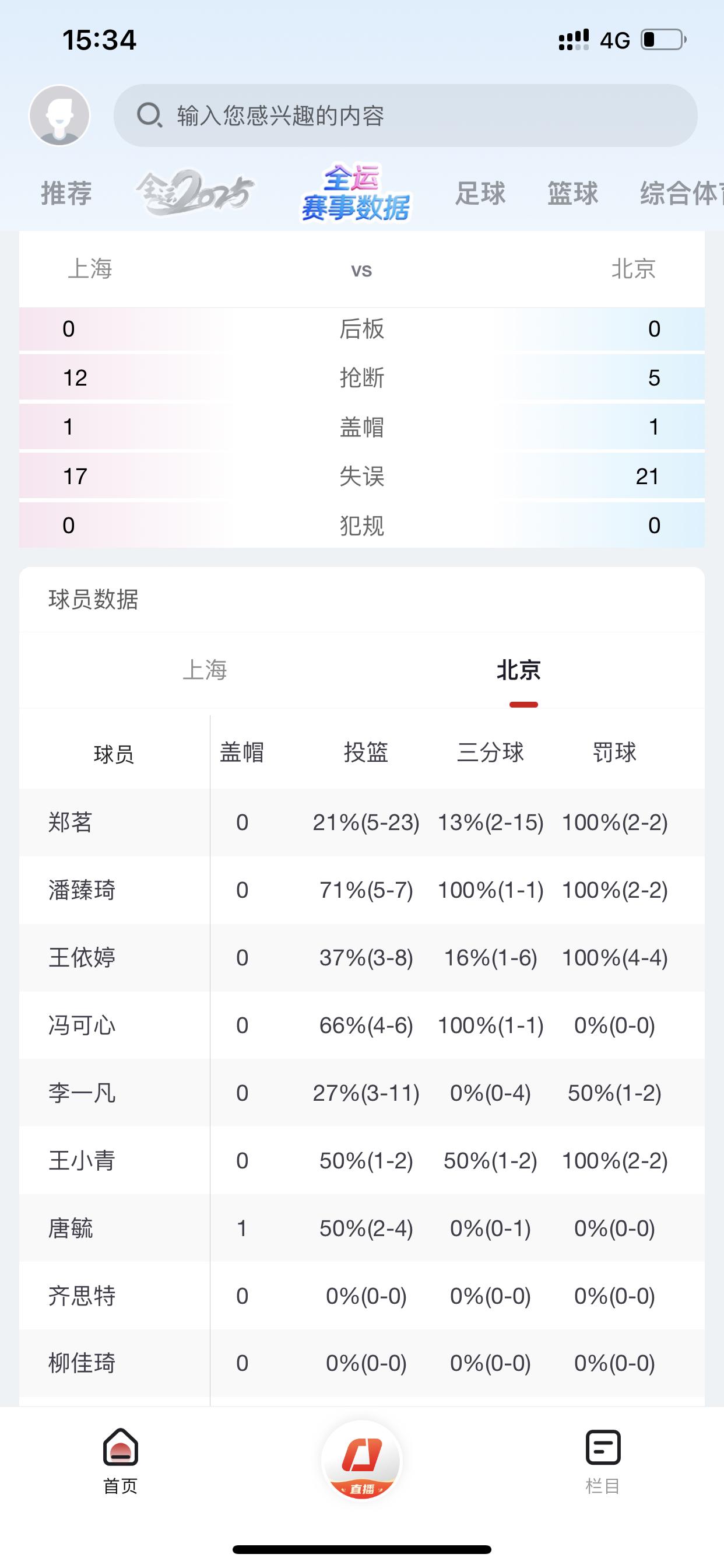 北京女篮昨和今遭遇两连败! 就在刚刚,北京女篮在第四节崩盘,被上海女篮彻底压制,从而失去了进前六的机会,只能跟山东女篮争夺第七名。 看完昨天四分之一决赛打辽宁和今天打上海女篮,我是真的不知道该说什么!其实上海打的也不怎么样,而且失误同样很多,可是人家把握有限的机会就是要强些。 第三节结束时,篮板球北京32个,上海17个,可是北京女篮得分还比上海少3分,可见得分效率之差! 不说主教练了,球球员配合真的不行,郑茗在前三节12投零中,他还喜欢疯狂的运球,不传不组织,就单干! 冯可心稳,昨天其实也稳,因为球权很少,出手也不乱搞,命中率很高很稳。今天66%的命中率 我看咪咕视频评论区不少人说潘臻琦怎么没发挥,潘臻琦只是角色球员,在既定战术发挥好的情况下,若有机会,她可以发挥作用,但别指望她能扛起球队!可是北京整体配合差,命中率被一个人拉的极低,简直没法看!(再说潘臻琦今天发挥作用可以了,得了13分,排在第二,命中率71%)