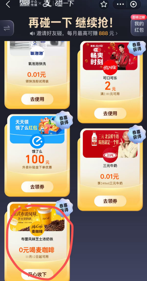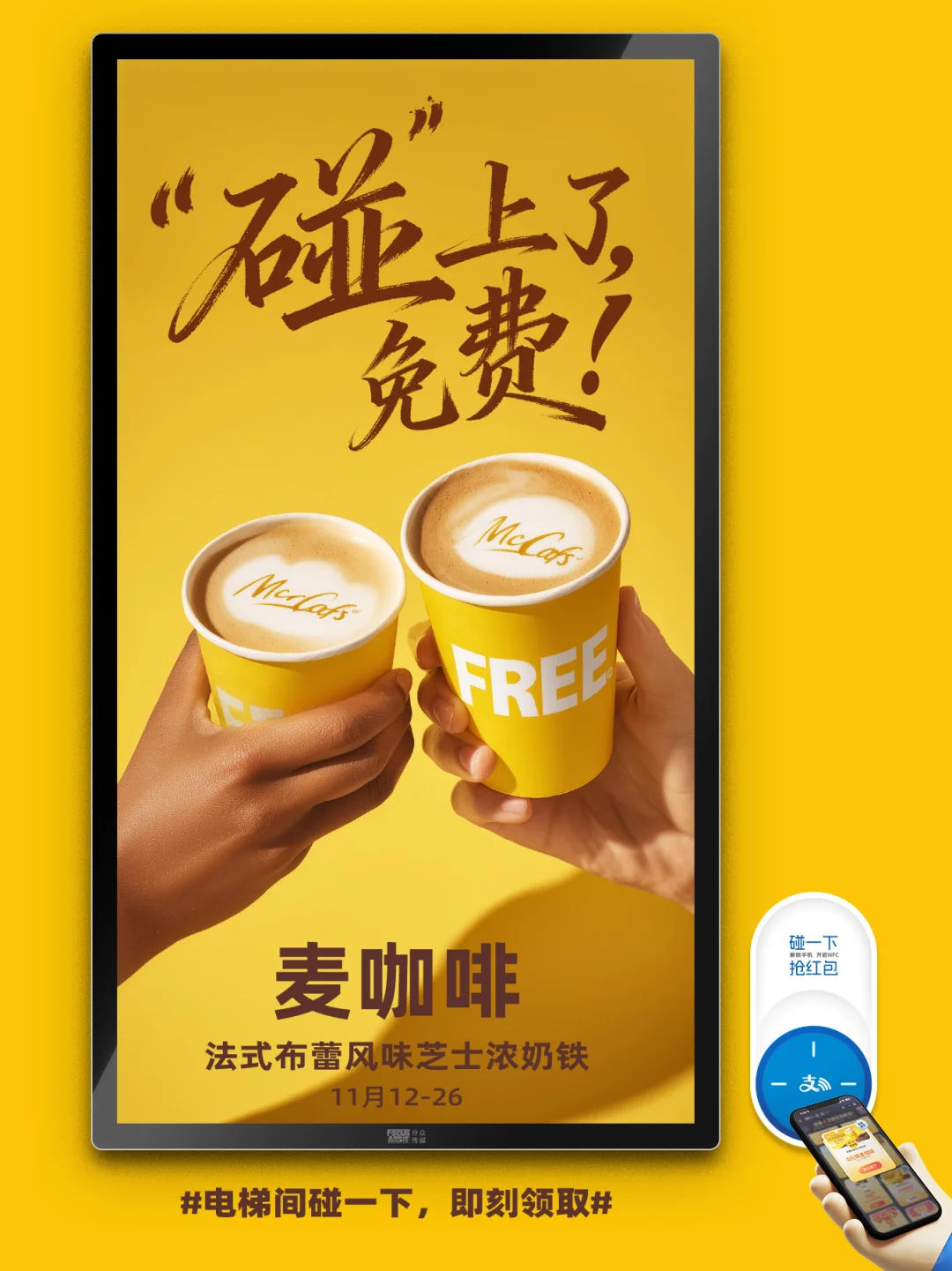 打卡记录:今天也在电梯里碰一下,免费法式布蕾风味芝士浓奶铁到手!建议麦门把“碰一下”活动多搞,我每天都愿意碰