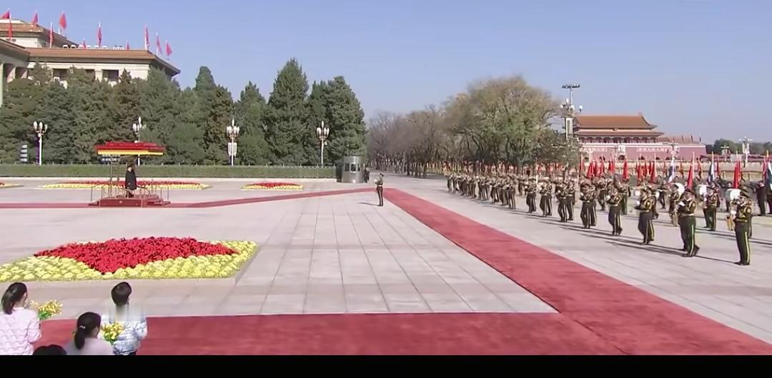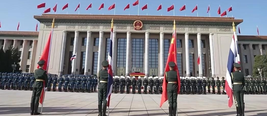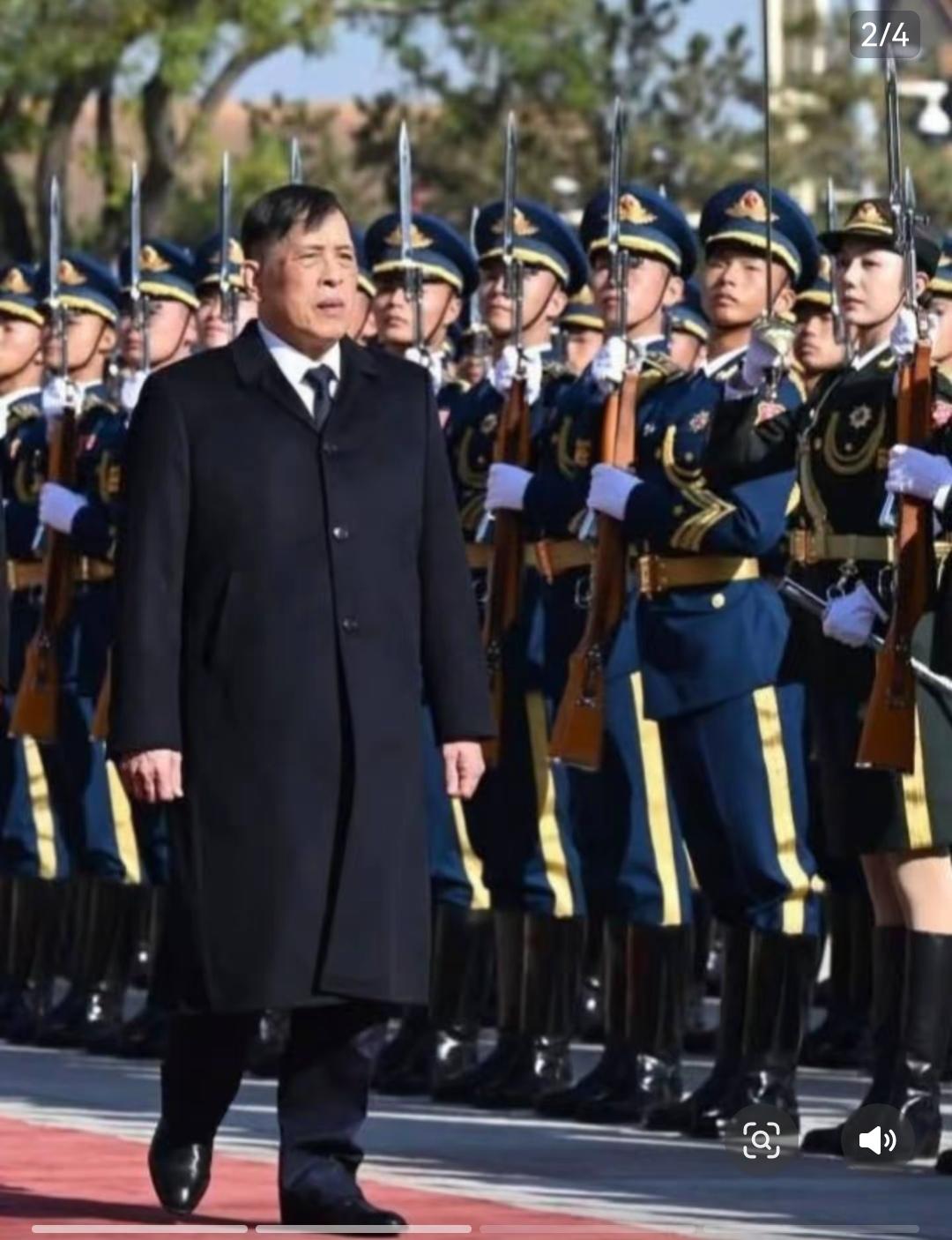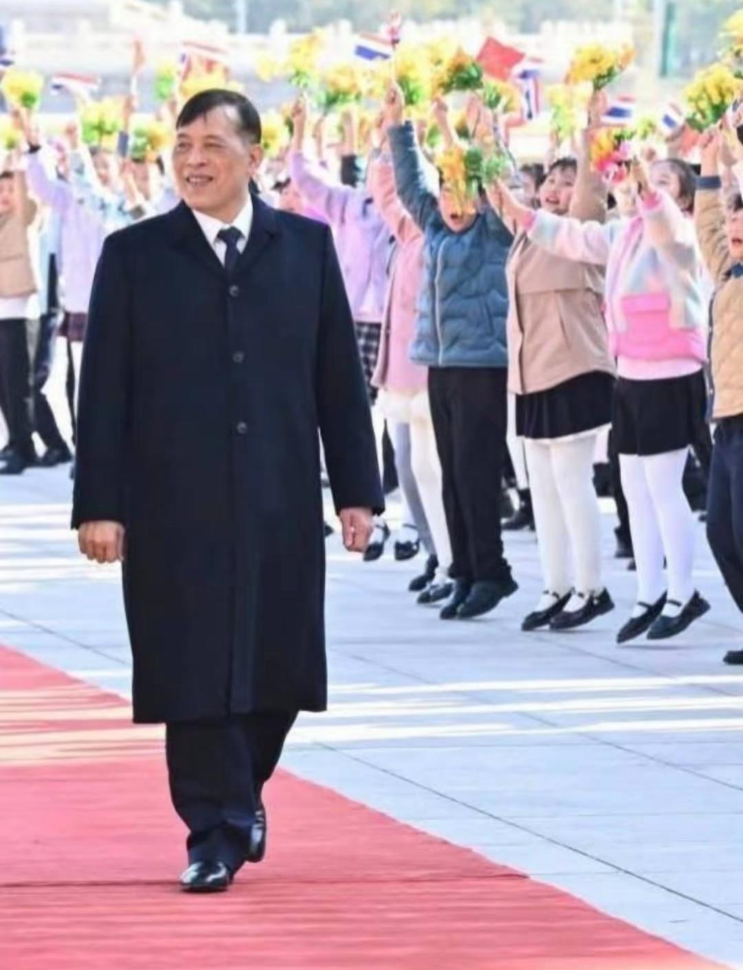 11月14日,泰王和苏提达访华第二天,受到了热情高规格的接待,在人民大会堂检阅了仪仗队。 天安门广场铺设了红毯,布置的很隆重,泰王和苏提达走在红毯上,认真检阅整齐的三军仪仗队,玛哈看到小朋友的欢迎,露出微笑。 苏提达穿着蓝色泰装陪同在玛哈身边,无论是检阅仪仗队还是在会议室,站姿坐姿都特别优雅,尽显泰王室贵族礼仪,展现出了良好的修养和气质,赢得了外交礼仪上的尊重。