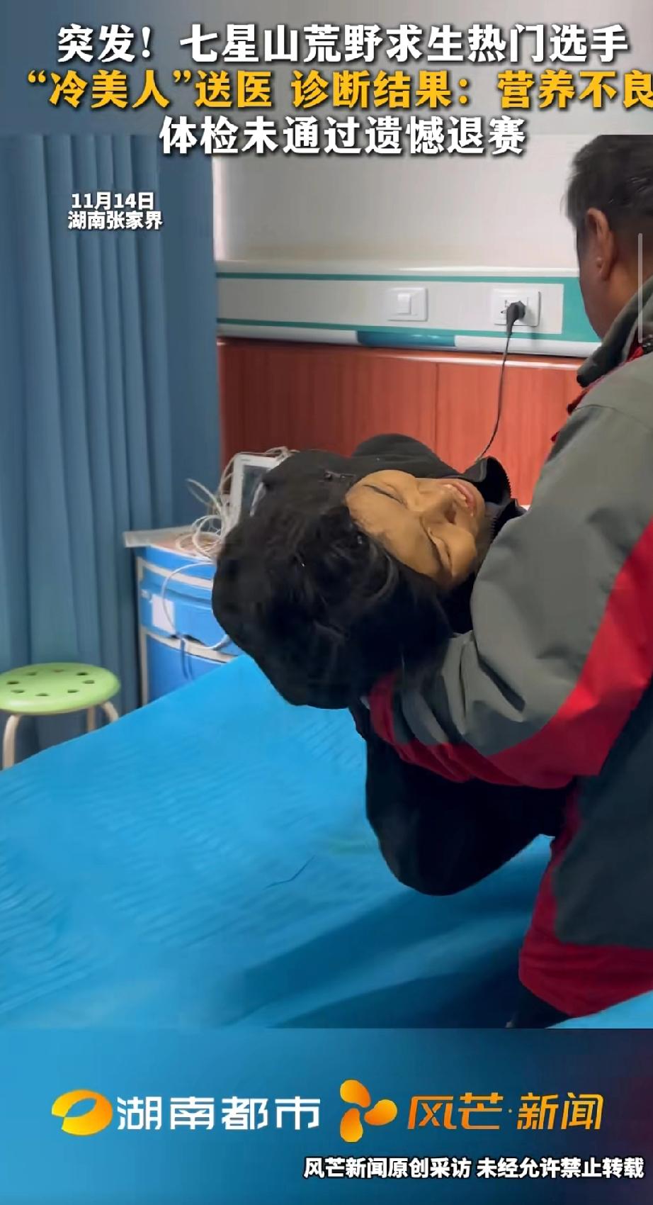 冷美人退赛了, 你们发现了吗,被工作人员抱去医院检查的她情况实在是太糟糕了。 脸色蜡黄,裤子里包裹的腿就像只有骨头,最让人心疼的是,工作人员喂她温水,她说: 这个温度我好喜欢! 一个女孩子,这么多天受冻挨饿的,真是太厉害了。 现在退赛对她来说不是坏事,再撑下去节目都办不下去了!