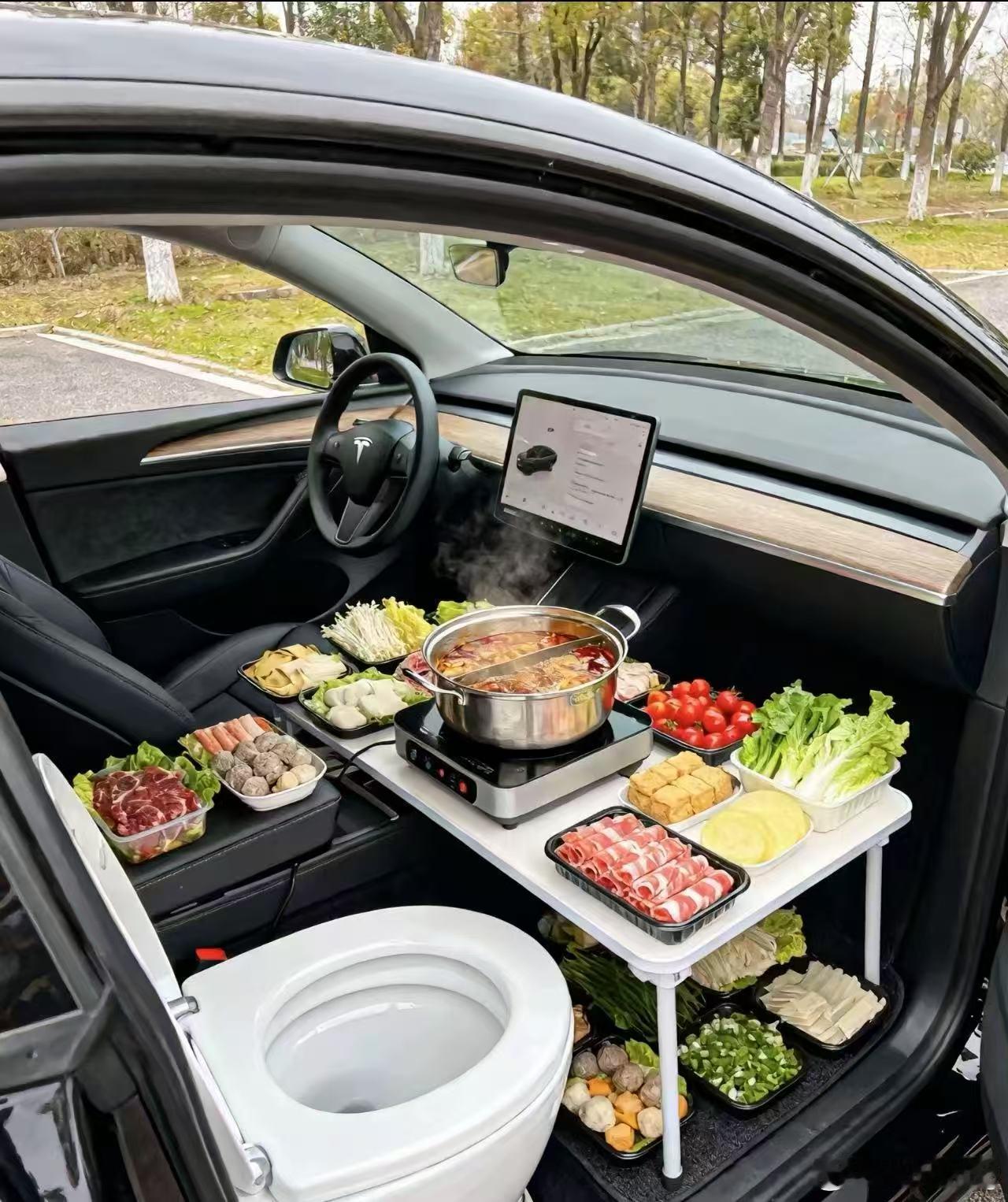 现在车里打火锅、洗澡都已经不新鲜了,就差什么时候在车里配马桶呢?