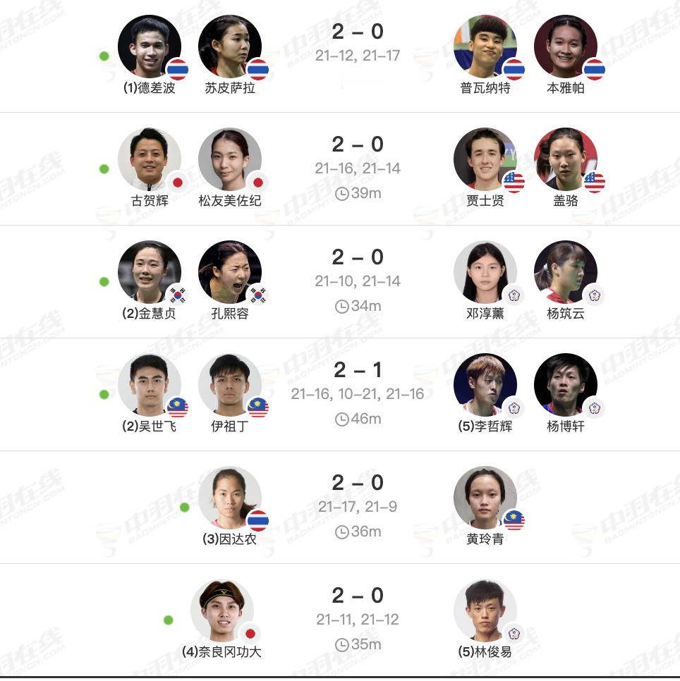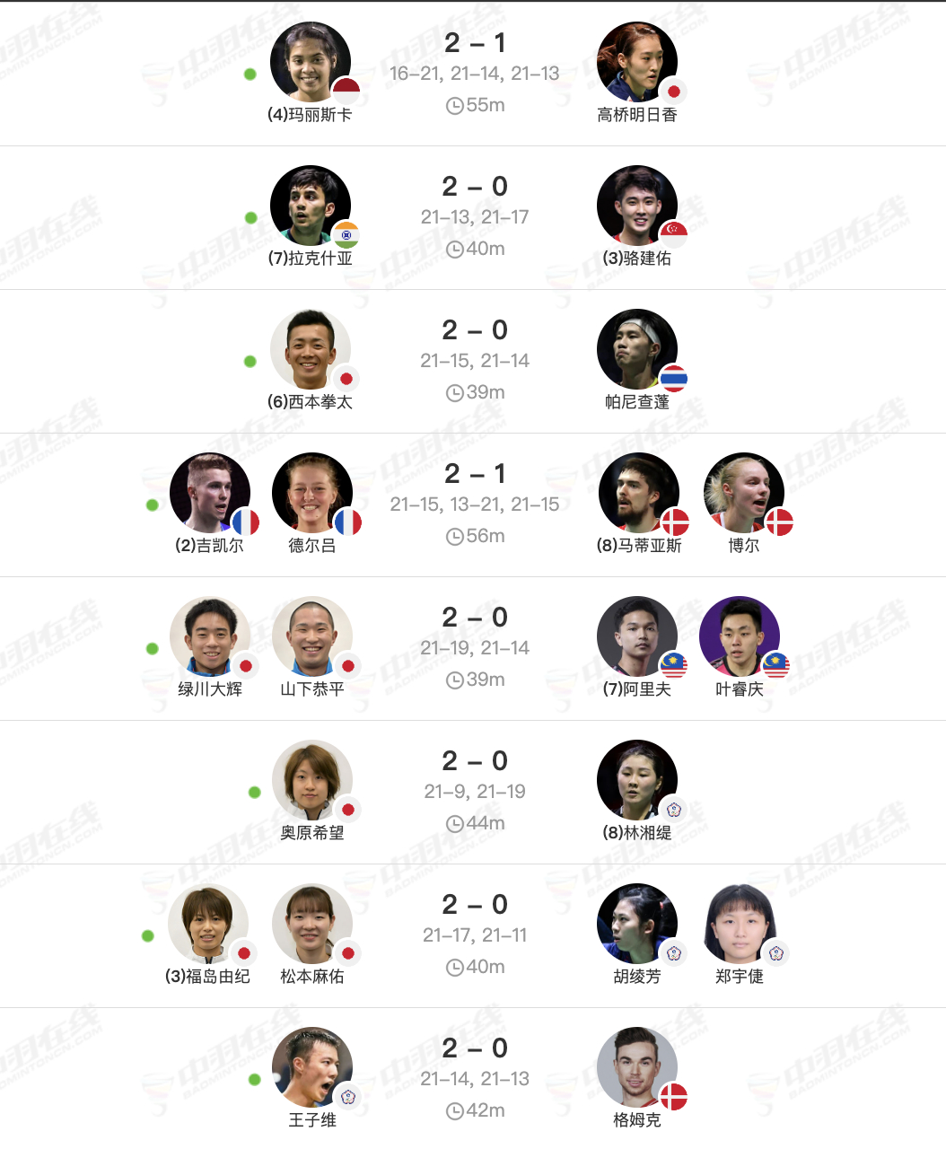 8进4赛果:骆建佑、林俊易出局,奥原希望、奈良冈功大晋级4强